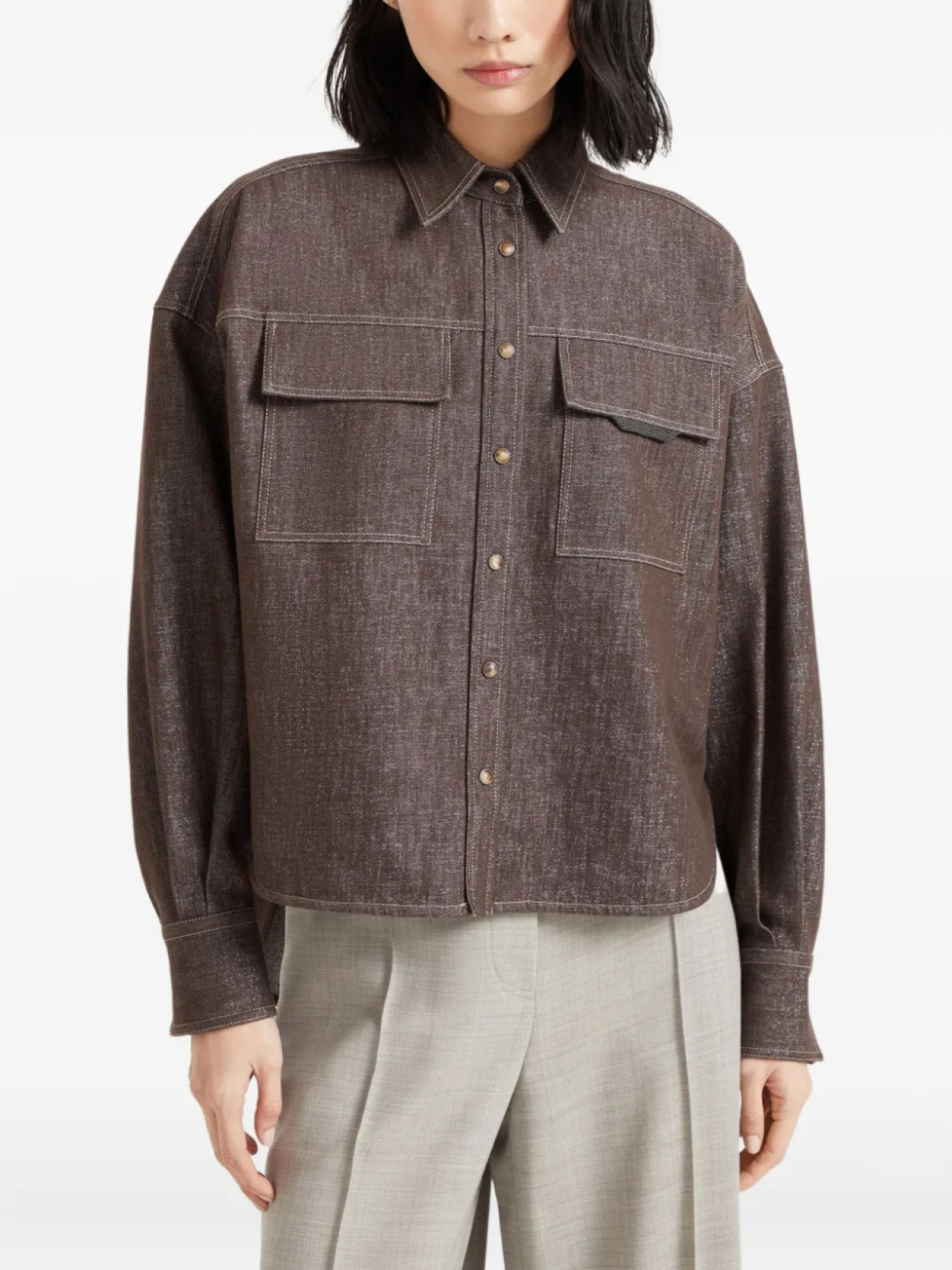 Brunello Cucinelli рубашка с контрастной подкладкой, коричневый 168 551₽