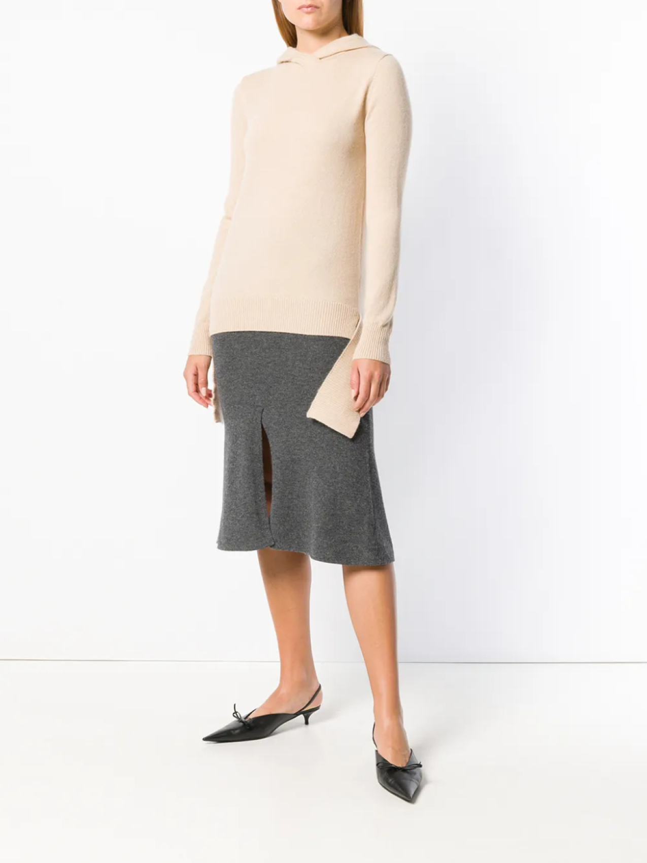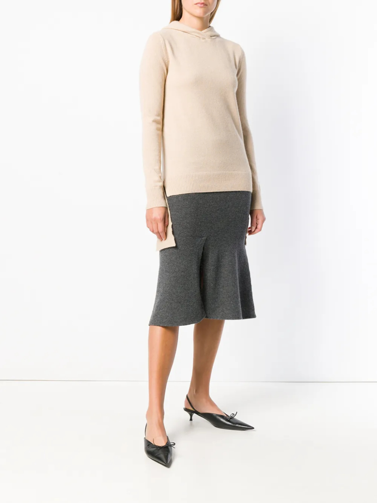 Бежевый кашемировый джемпер 'Mabel' с капюшоном от Cashmere In Love. Длинные рукава, прямой подол.
