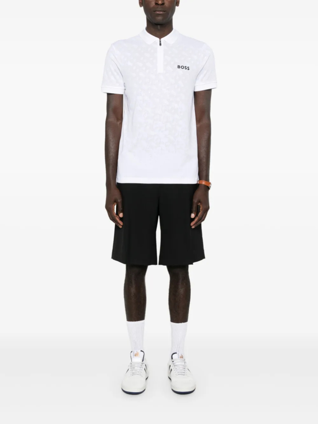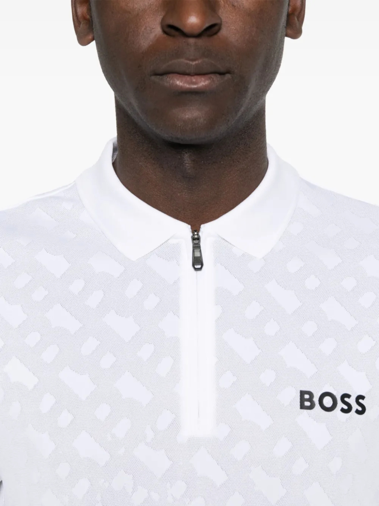 Рубашка поло с жаккардовым узором и монограммой BOSS, белый