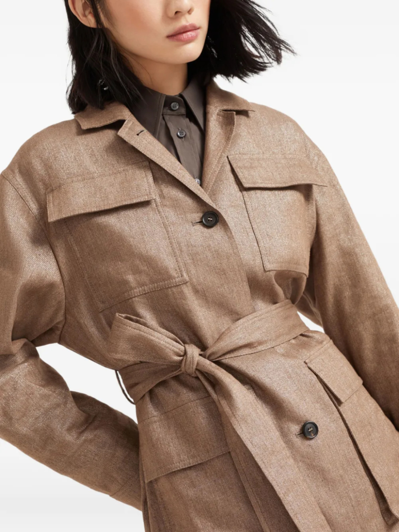 Brunello Cucinelli жакет с поясом, коричневый