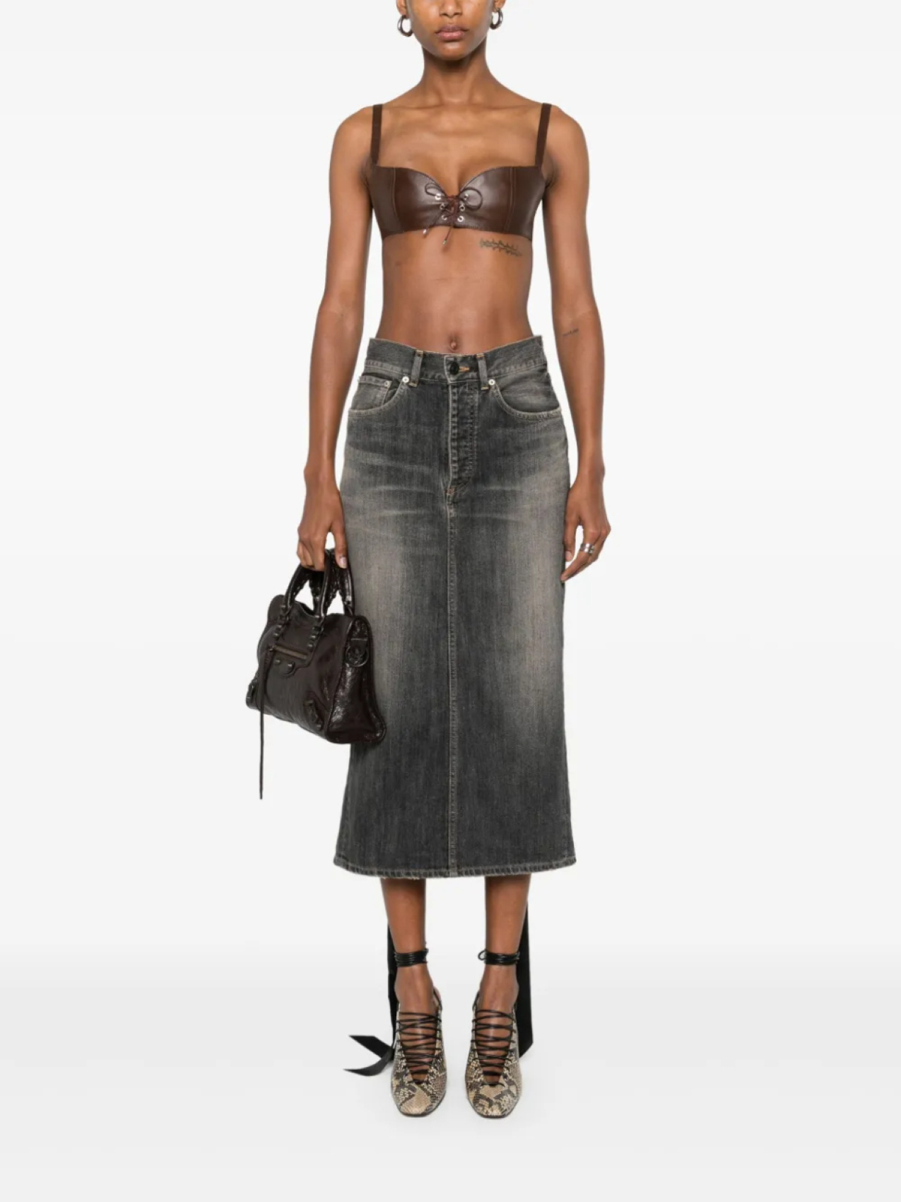Кожаный укороченный топ Ludovic de Saint Sernin, коричневый