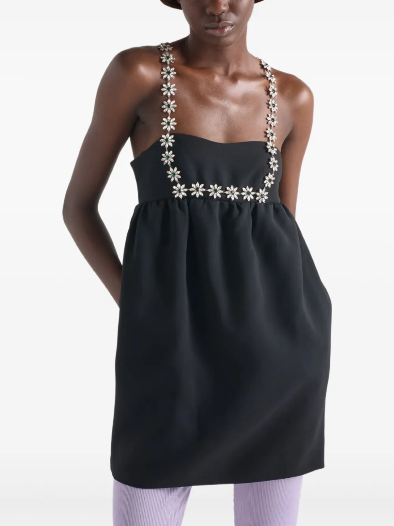 Мини-платье с вышивкой Prada, черный