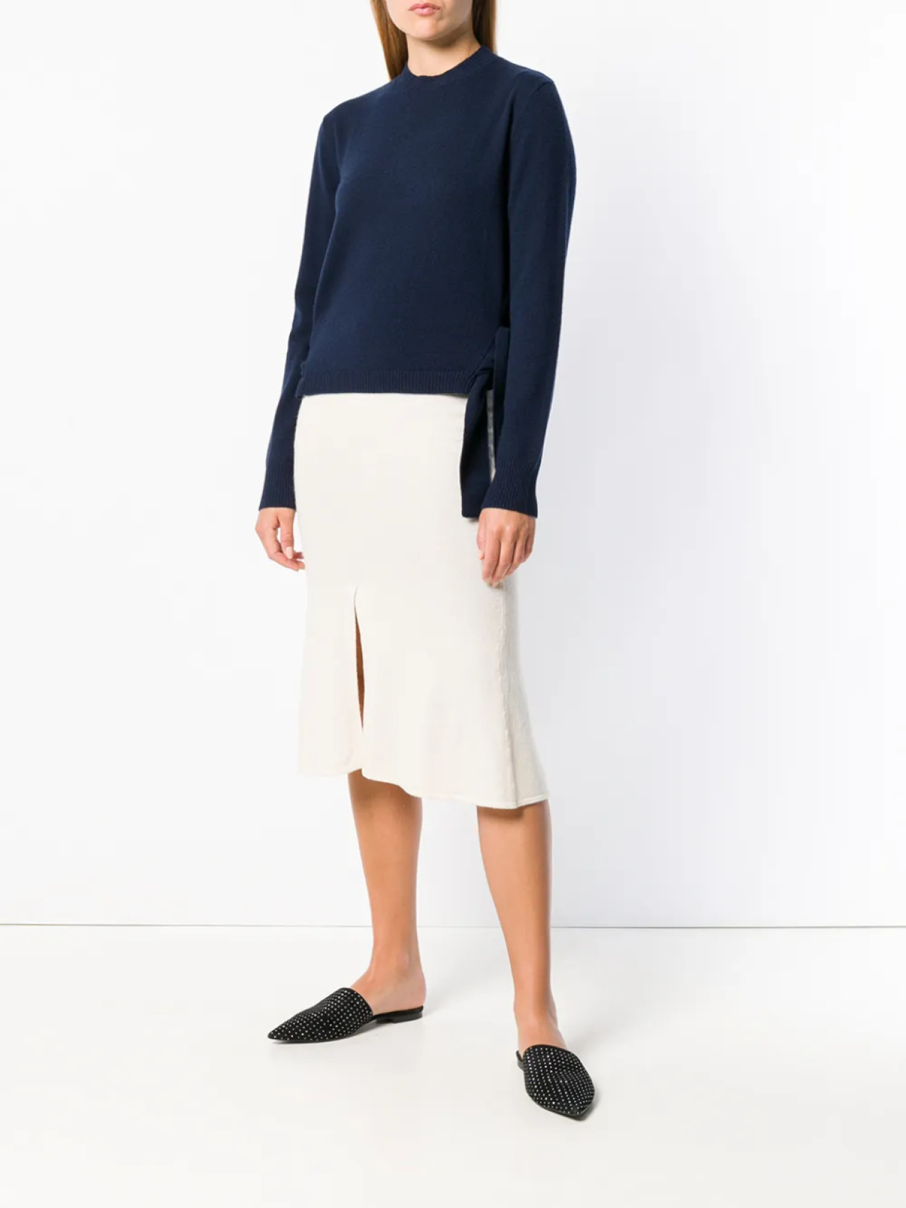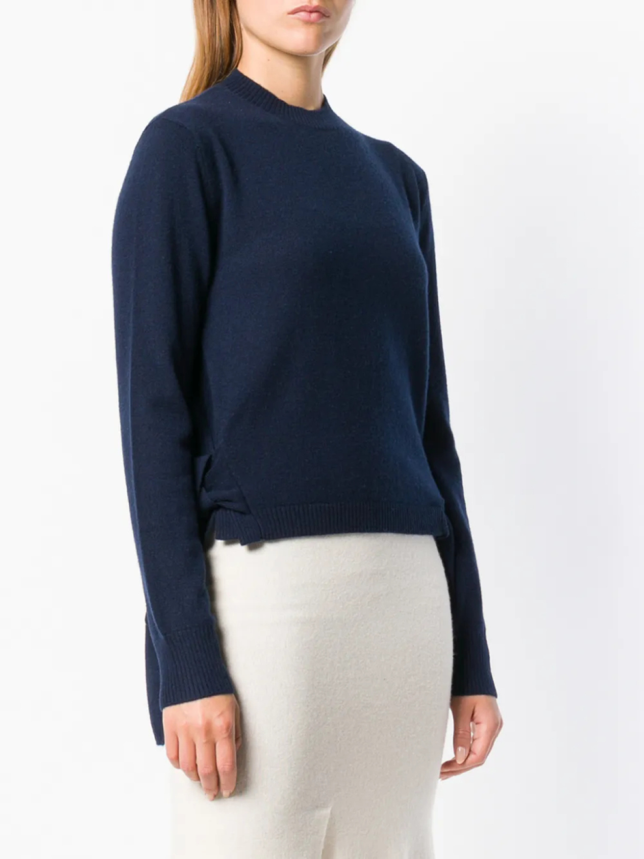 Stella cropped jumper от Cashmere In Love. Круглый вырез, длинные рукава и прямой подол. Цвет: синий.