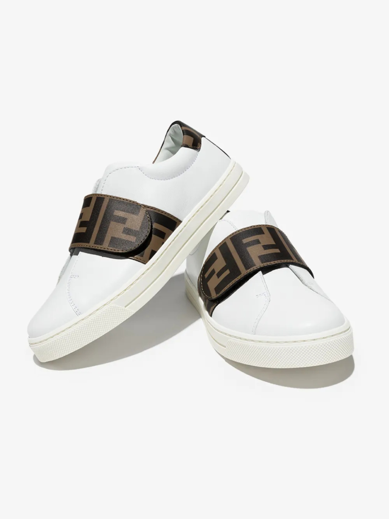 Белый, расцветка Tobacco Brown, кожа, логотип FF, контрастный задник с логотипом, закругленный носок, застежка на липучке спереди и резиновая подошва.