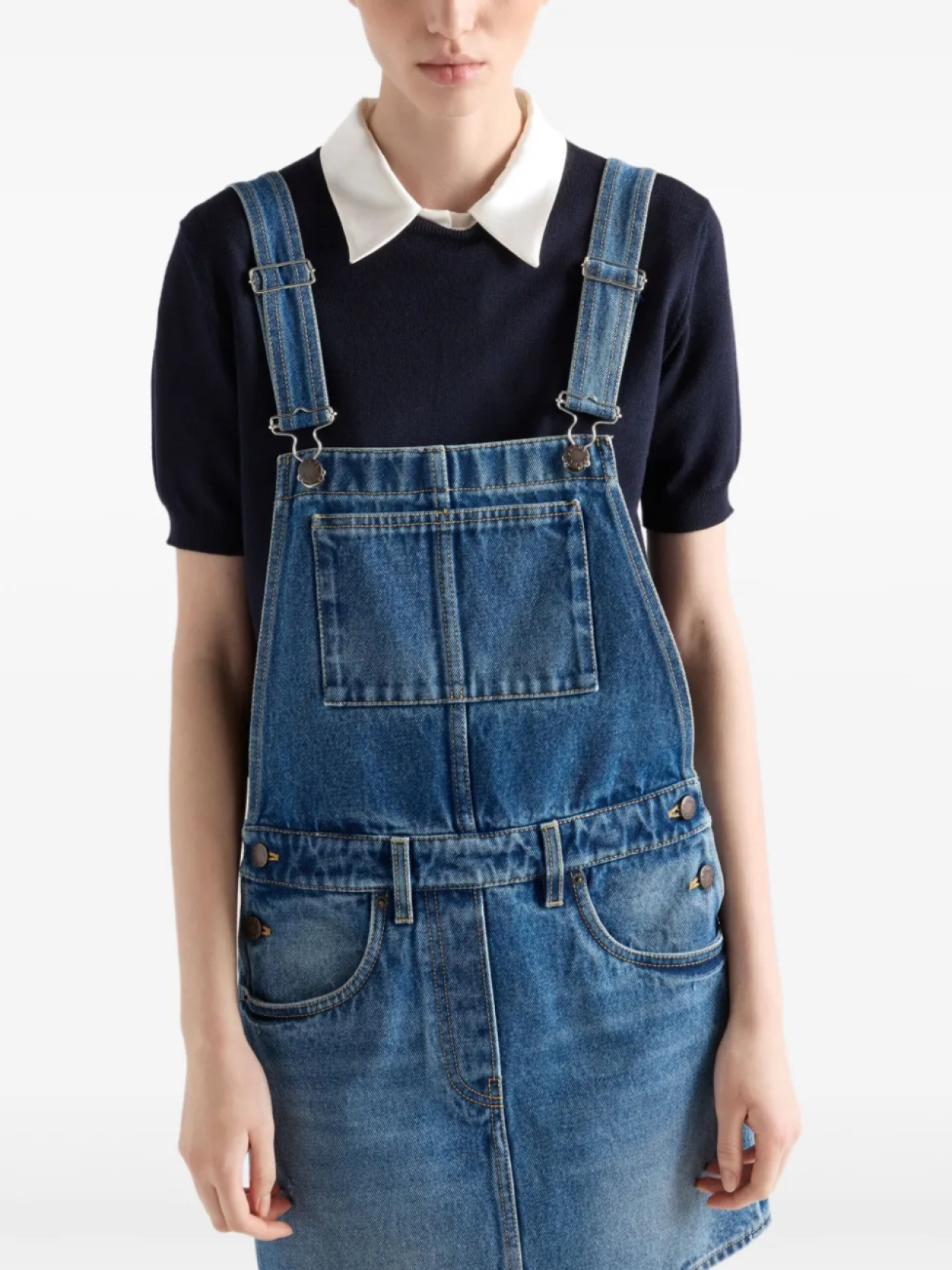 Мини-платье с нагрудником Prada из денима, синий 178 456₽