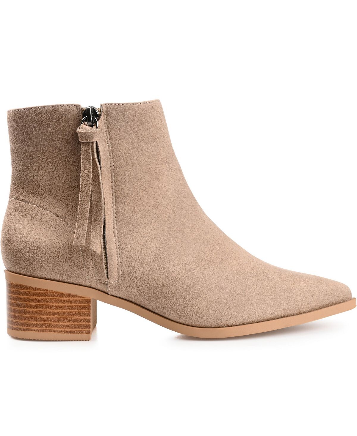 Шагните стильно в ботильонах Sadiya от Journee Collection. Этот силуэт выполнен из мягкой веганской кожи, приподнятой наборным каблуком. Стелька делает их очень удобными, а боковая молния украшена кисточкой.