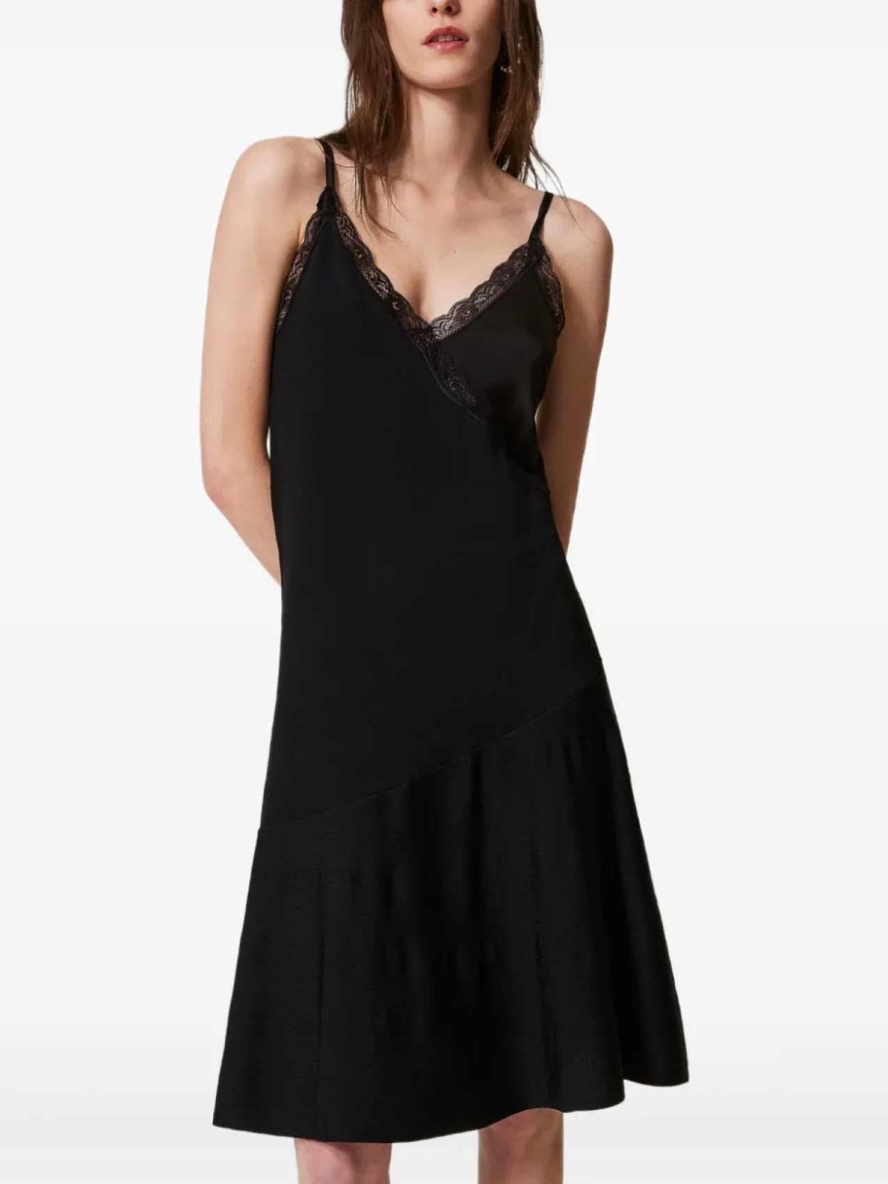 Платье-комбинация TWINSET с кружевной отделкой, черный