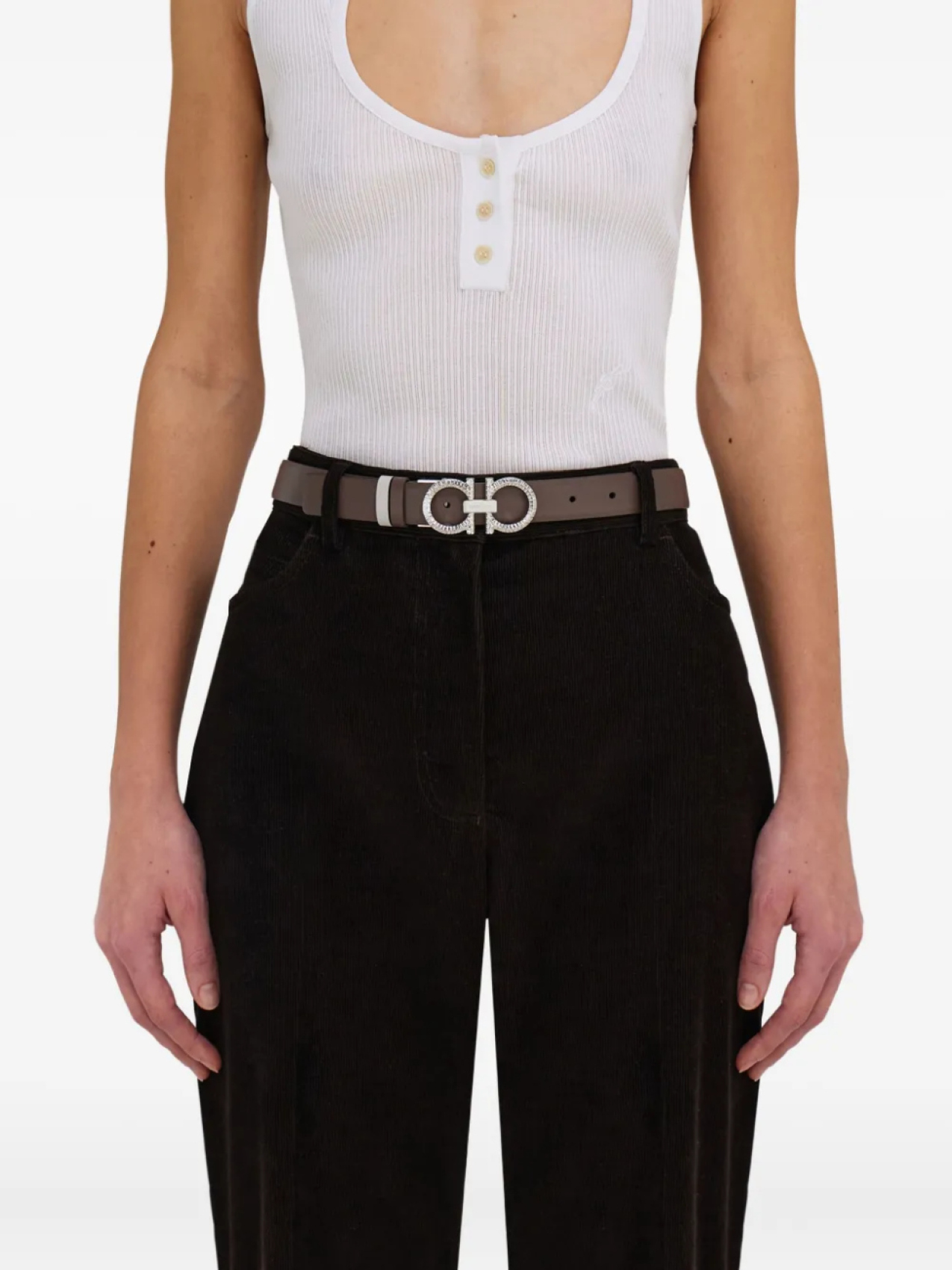 Двусторонний регулируемый ремень Gancini от Ferragamo, коричневый