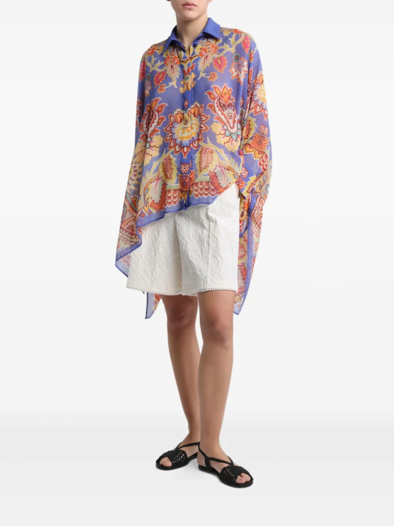 Рубашка ETRO пончо с цветочным принтом, синий