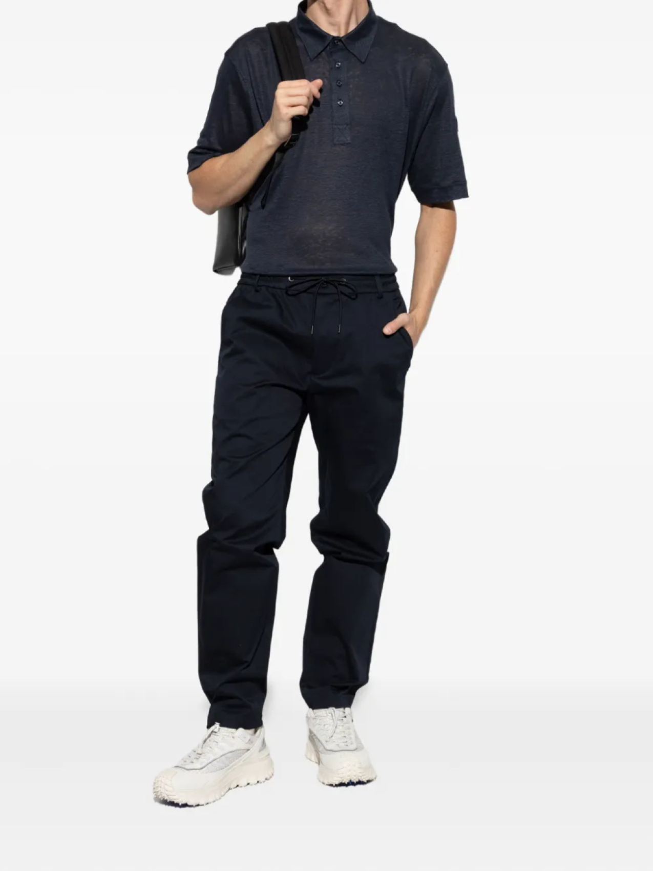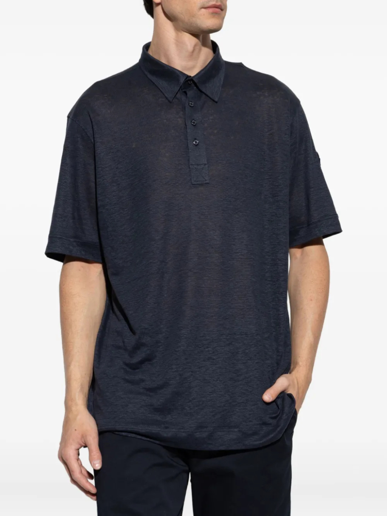 Льняная рубашка-поло Moncler, синий 60 956₽