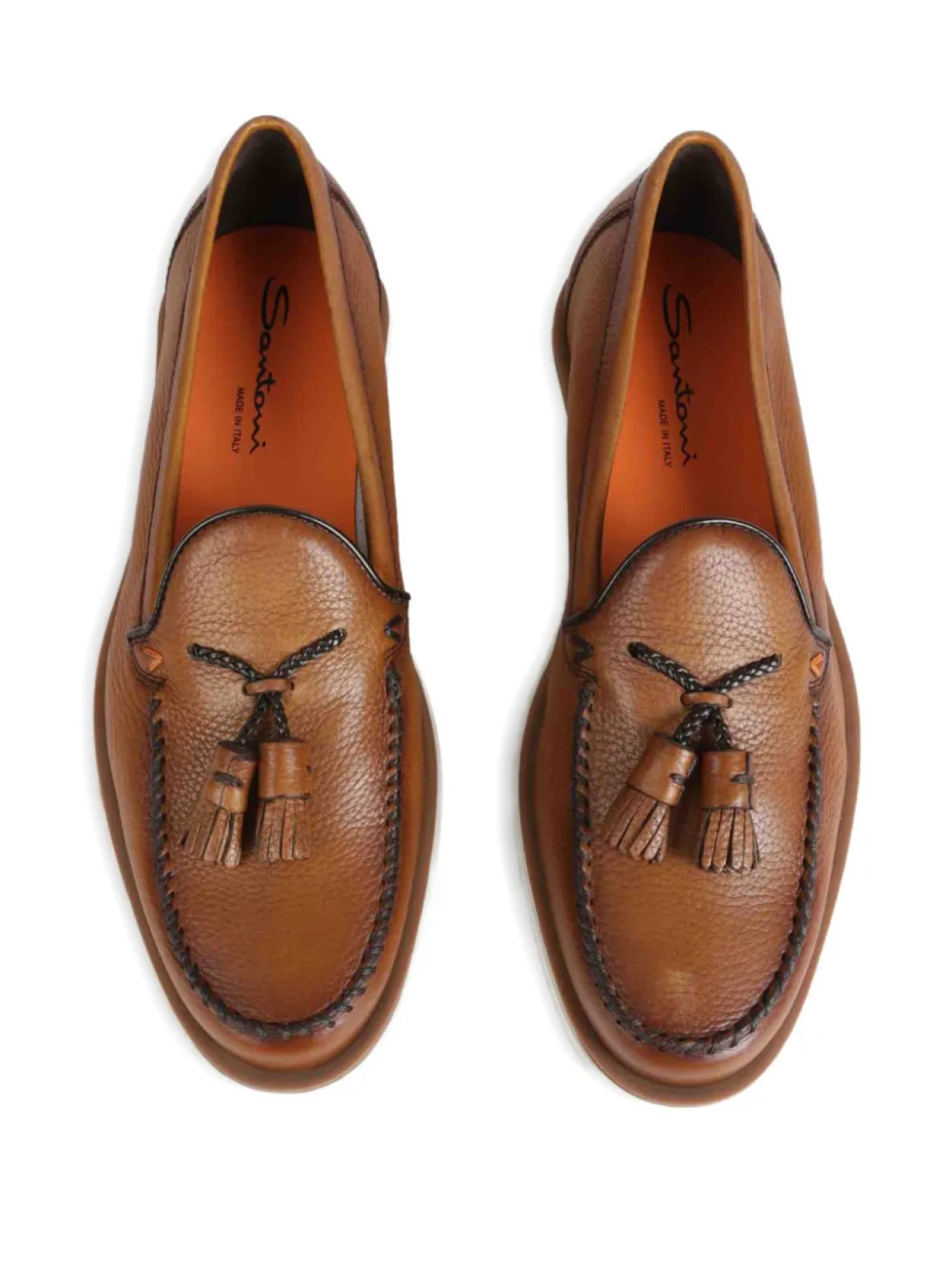 Кожаные лоферы Santoni с кисточками, коричневый 63 977₽