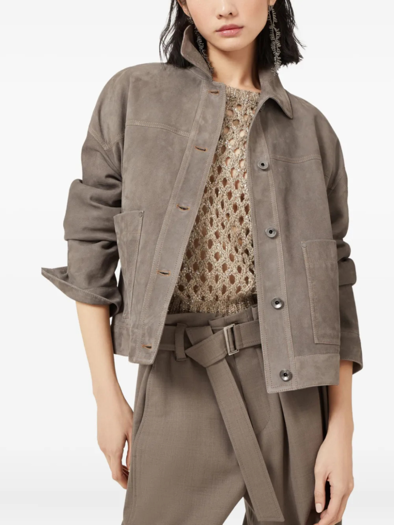Brunello Cucinelli кожаная куртка на молнии, серый 649 969₽