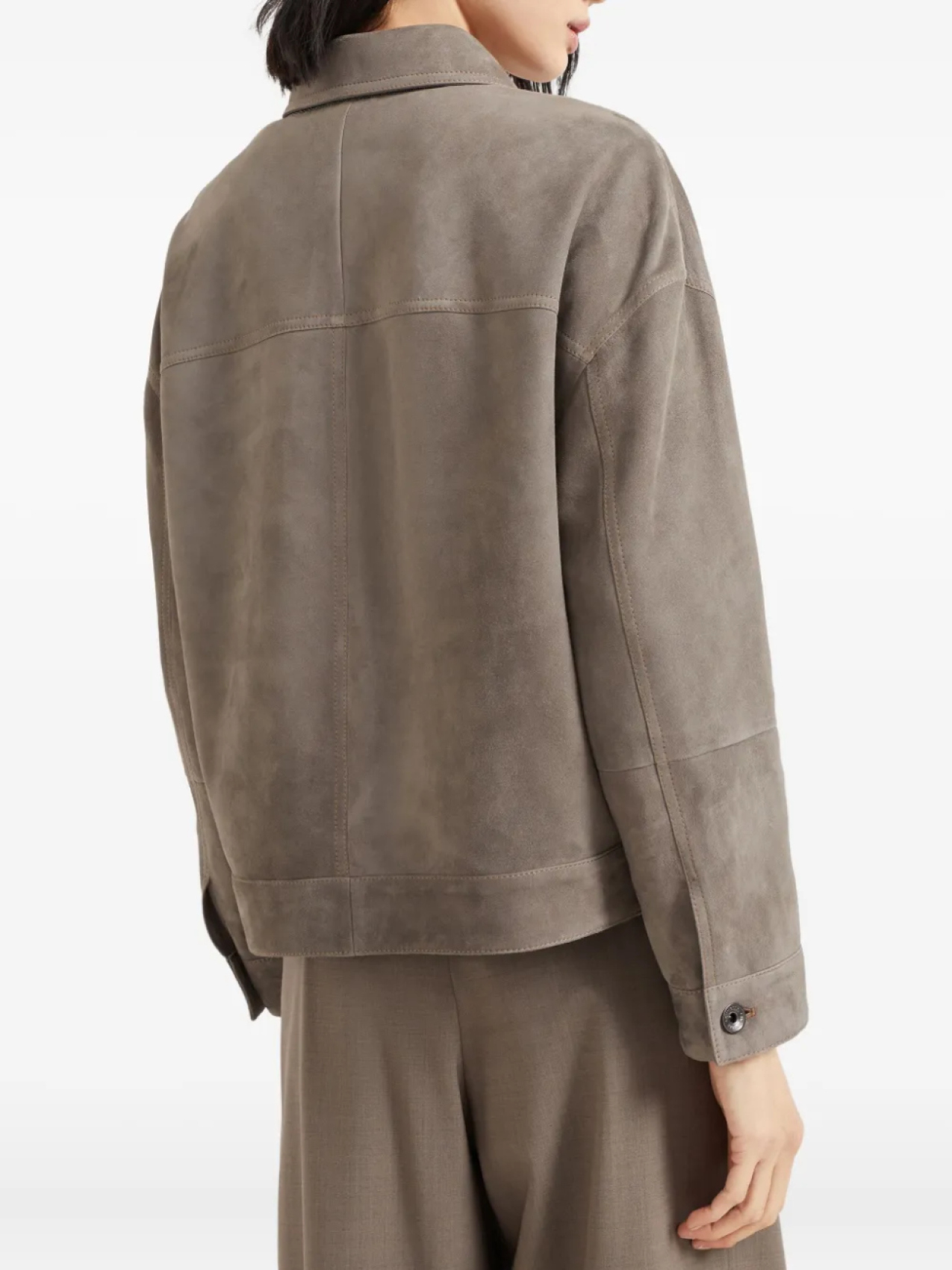 Brunello Cucinelli кожаная куртка на молнии, серый
