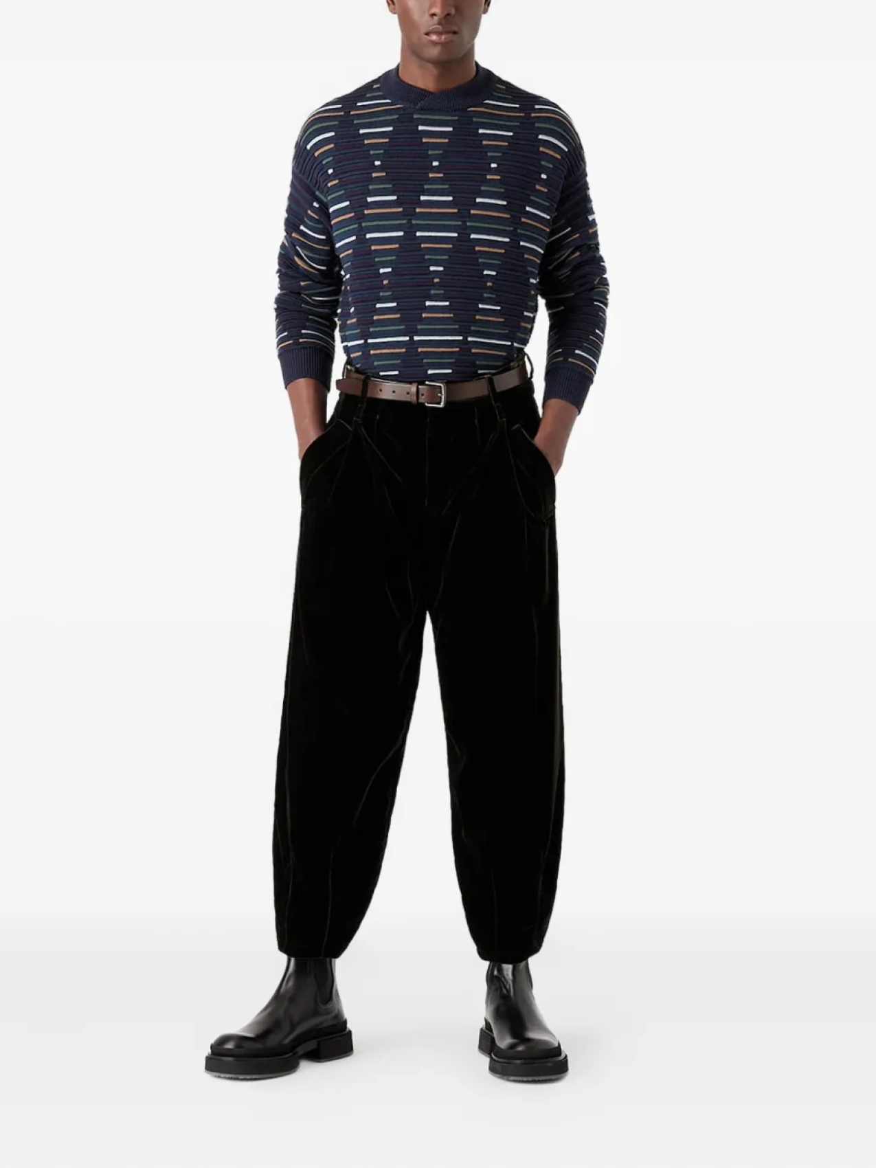 Свитер с геометрическим жаккардом от Giorgio Armani, синий 57 596₽