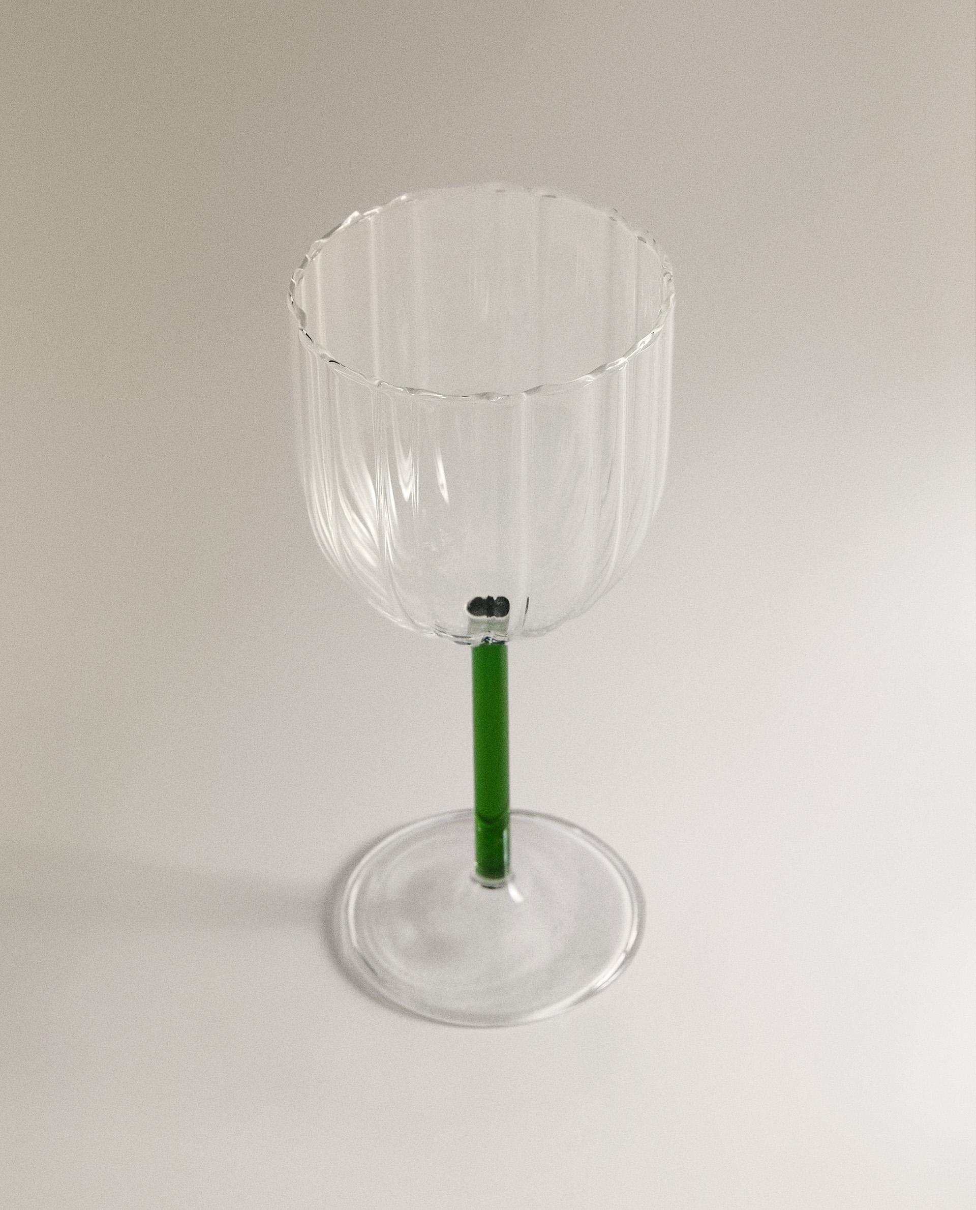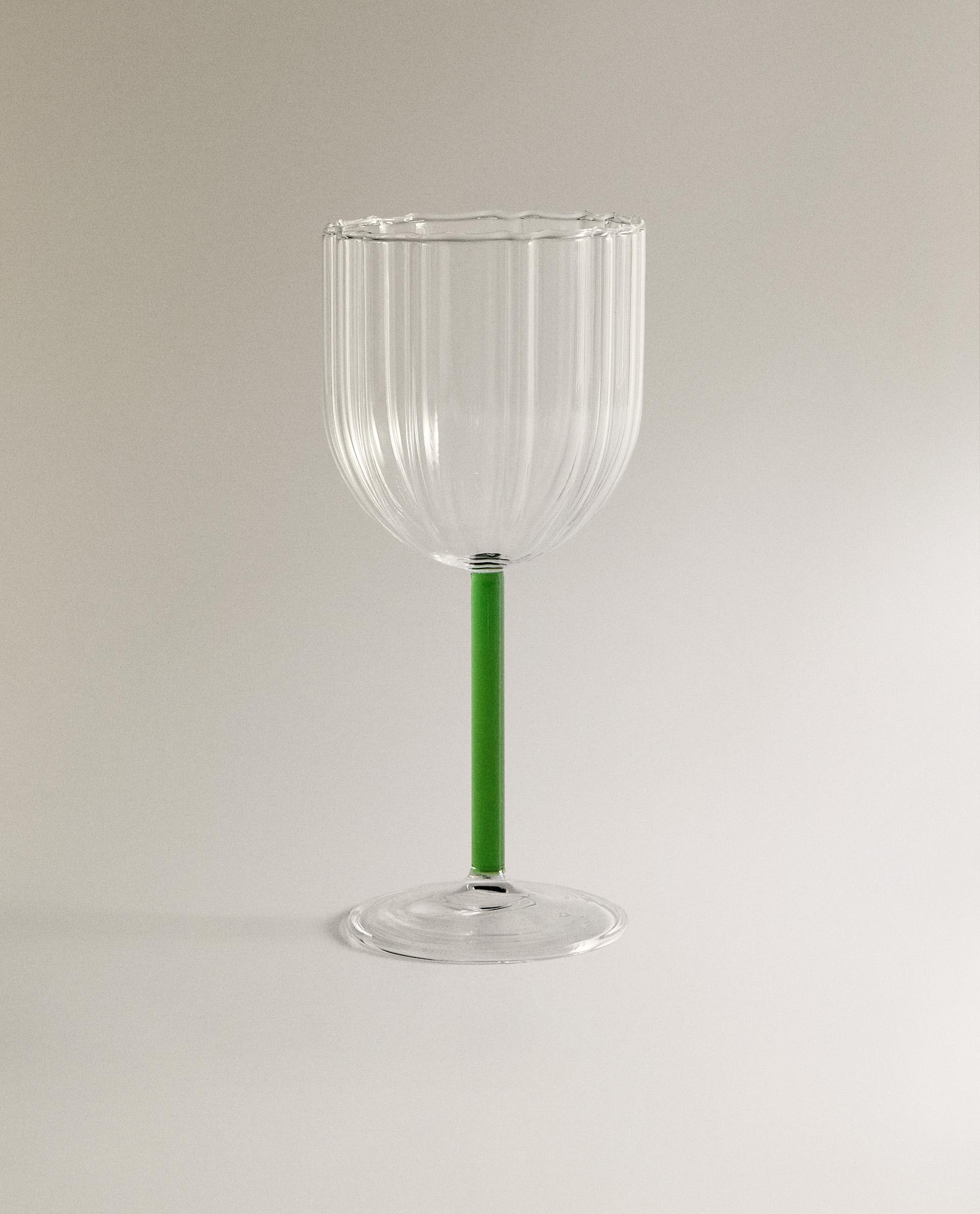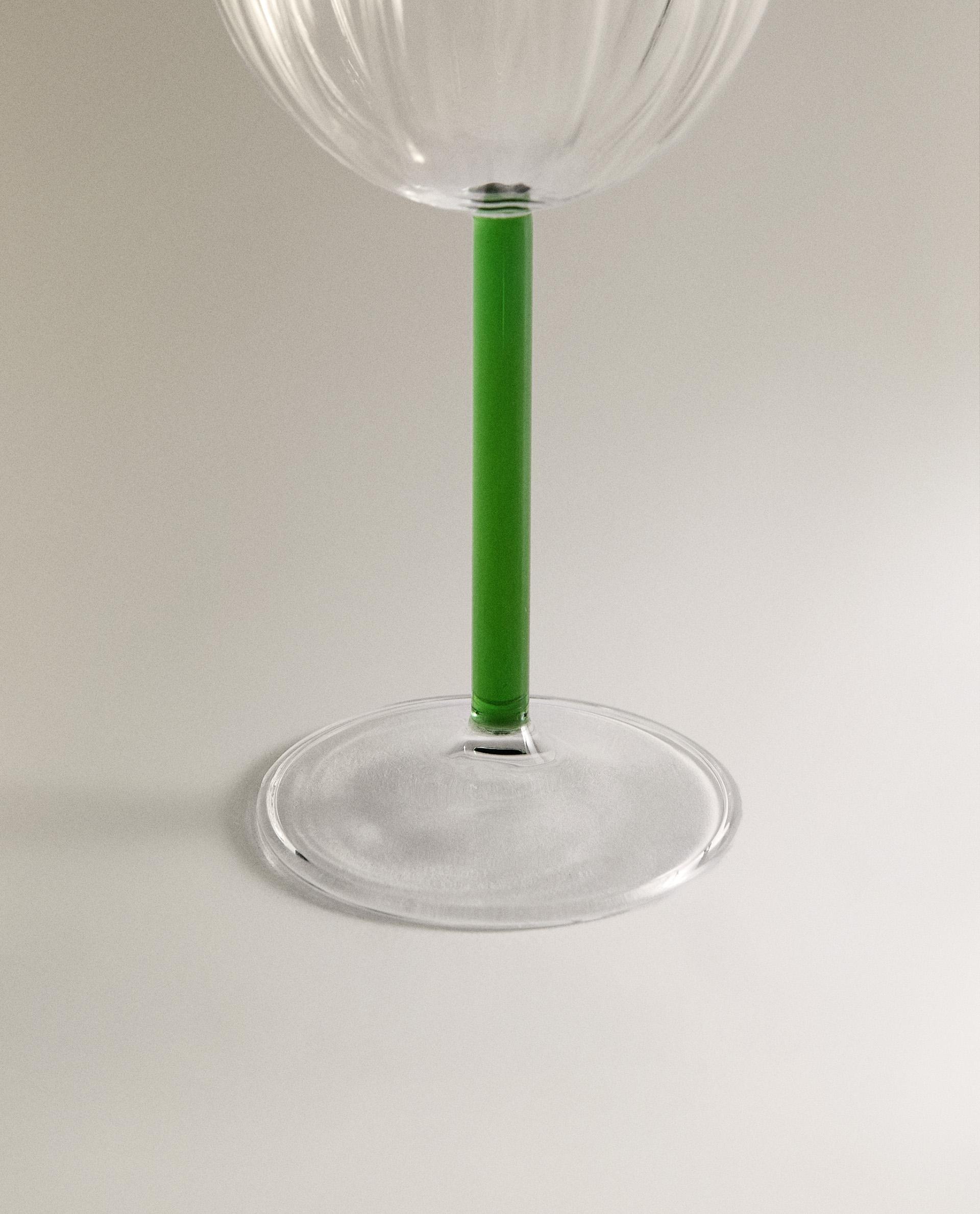 Бокал из боросиликатного стекла с контрастной ножкой.