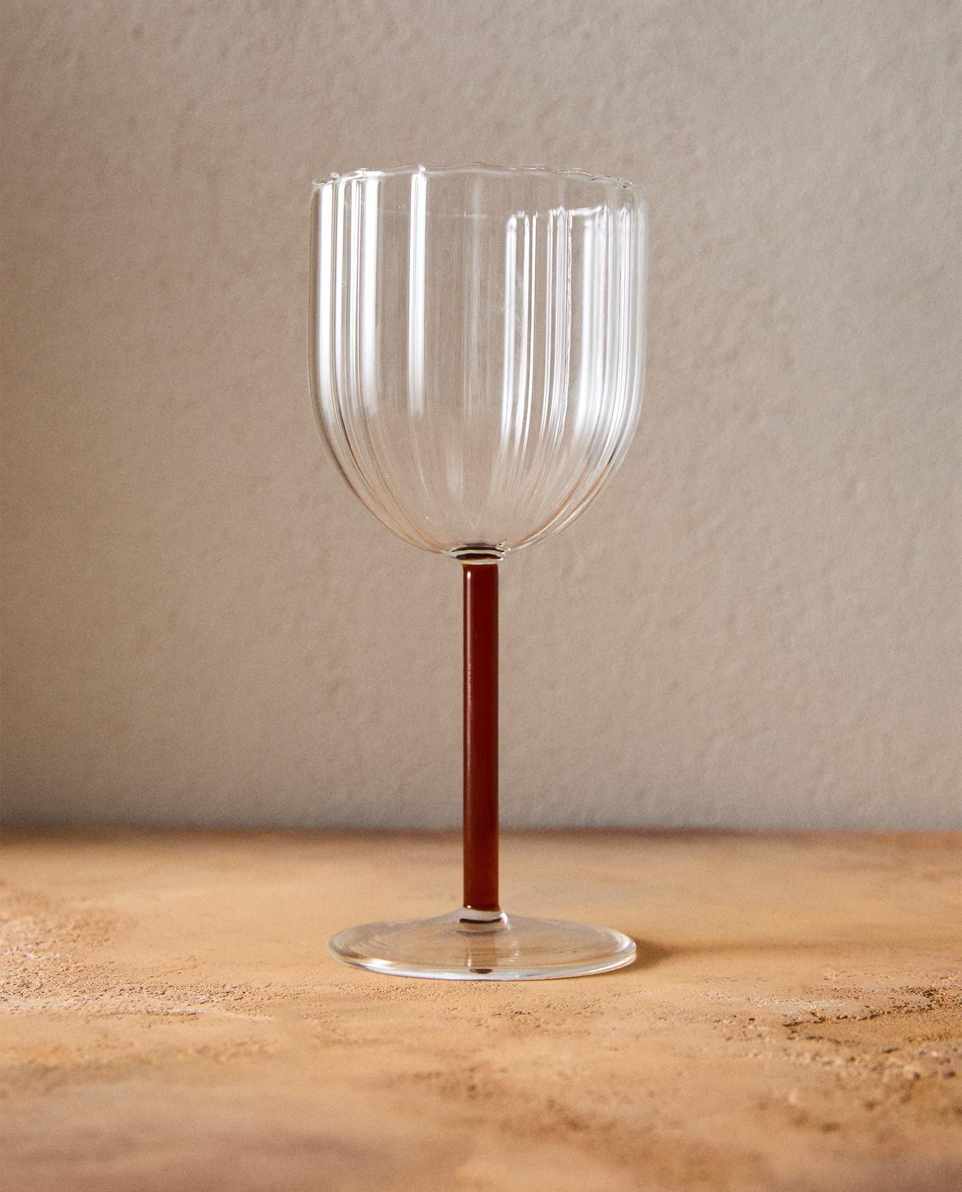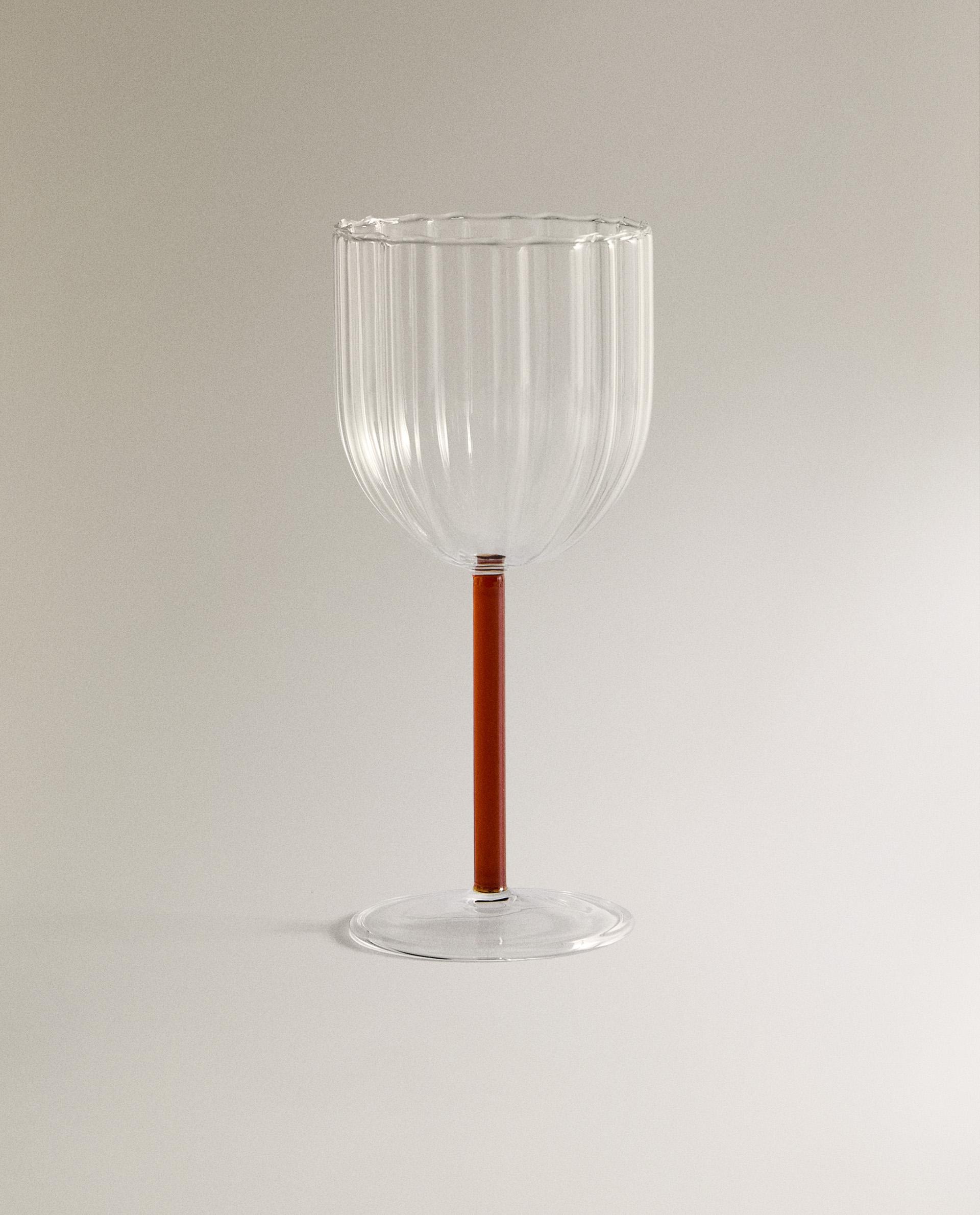 Бокал из боросиликатного стекла с контрастной ножкой.