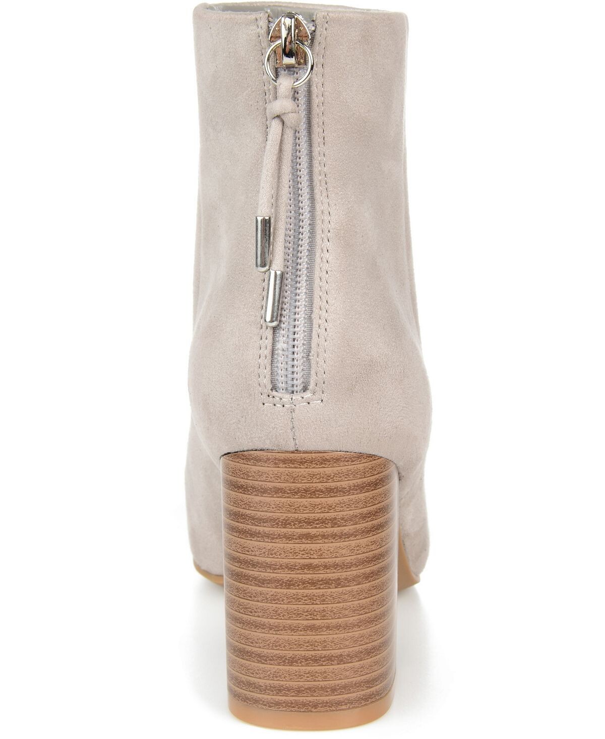 Базовая классика коллекции Journee — ботильоны Audrina. Высокий блочный каблук удлиняет ногу, а мягкая веганская замша формирует универсальный силуэт с квадратным носком. Застежка-молния сзади позволяет легко надевать их, а комфортная стелька из пеноматериала толщиной 4 мм завершает дизайн.