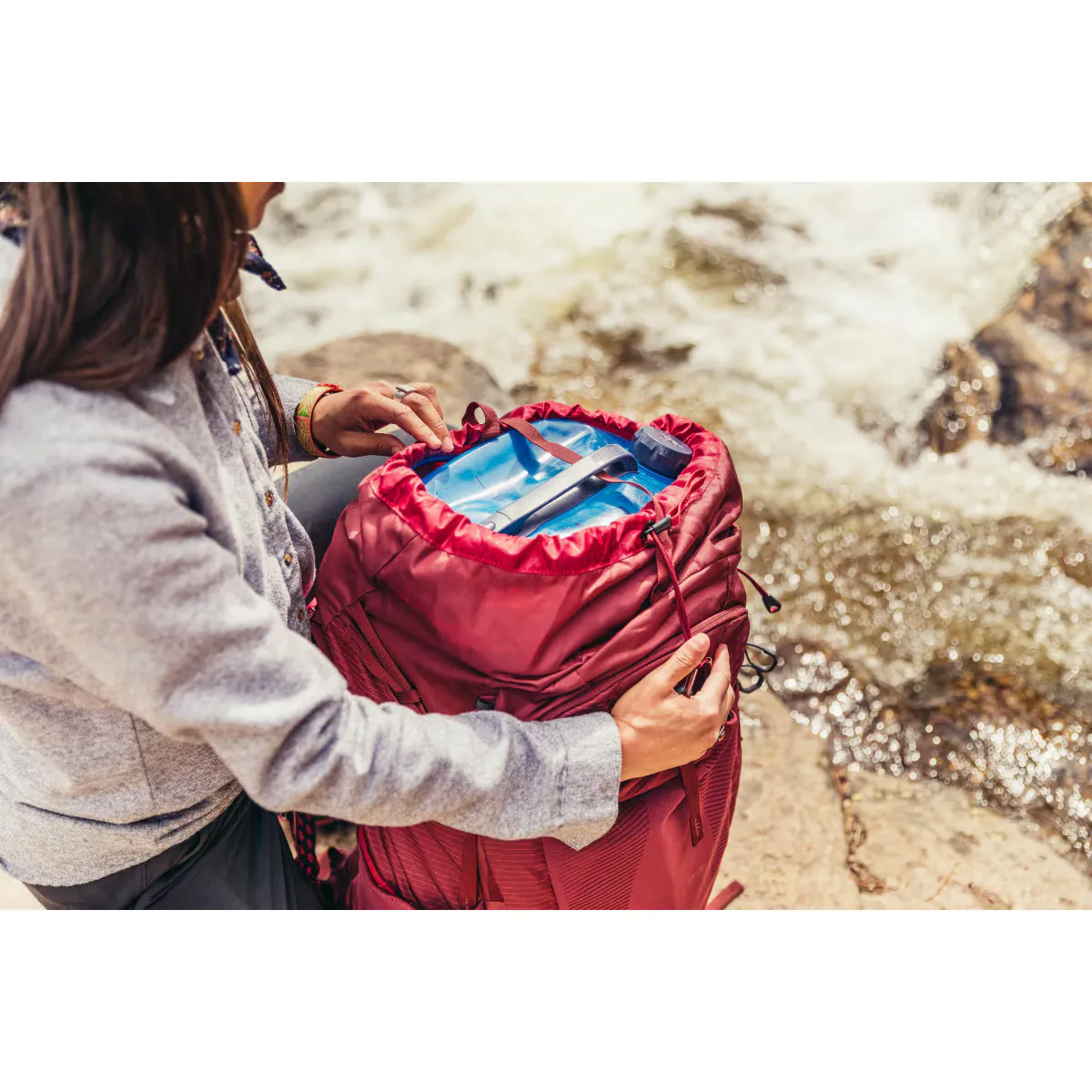 Гидратационная сумка. Первый резервуар, разработанный для туристов, альпинистов и базовых лагерей; 3D Hydro Trek быстро сохнет и всегда готов к приключениям. Мягкий. Размеры: 8 x 31,5 x 24 см. Вес: 0,2 кг. Объем: 3 л. 3D QuickDry: конструкция резервуара 3D с мягким формованием предотвращает контакт между верхним и нижним слоями, что ускоряет время высыхания и предотвращает рост бактерий. Многофункциональный дизайн: оригинальная круглая форма предназначена для размещения в верхней части вашего рюкзака, а также в вашем привычном гидрационном чехле. Широкая форма корпуса сохраняет распределение веса в верхней части вашего тела и делает его более компактным. Когда он зафиксирован в верхнем положении с помощью шнурка и верхней части. Кран Basecamp: носик с кнопкой, обеспечивающий быстрый поток воды, способствующий уменьшению проливаний при заполнении контейнеров, бутылок с водой или для мытья рук в кемпинге. Интеграция фильтра Backcountry: инновационная система фильтрации, пригодная для использования в пути благодаря своему расположению в верхней части рюкзака, что делает его максимально доступным. Имеет стандартизированные аксессуары для интеграции с любой системой фильтрации с быстрым отключением. Быстрое отключение: встроенный аксессуар для быстрого отключения под углом 90°, обеспечивающий бесшовное направление шланга и быстрое извлечение резервуара. Система крепления SpeedClip: система шарниров SpeedClip lock-and-go с одной рукой совместима с большинством полноразмерных рюкзаков. Формованная ручка: удобная мягкая формованная ручка облегчает заполнение, в то время как формованная основа (с встроенным быстрым отключением шланга) облегчает размещение и извлечение из рюкзака без проблем. Порт для наполнения EasyGrip: порт для наполнения с резиновым покрытием для облегчения открытия и наполнения; совместим с насосными фильтрами диаметром 38 мм. Крышка порта для наполнения: формованная защитная крышка для защиты носика крана Basecamp от грязи и сажи, присутствующих в пути, и с простым хранением, идеально подходящим для использования в пути. Вентили-кусочки с мягким носиком и магнитным зажимом: вентиль с функцией переключения потока на открыто/закрыто позволяет безопасно хранить и не допускать утечек как в ходе путешествия, так и обратно (включает магнитный аксессуар для грудного ремня). Вешалка Basecamp: формованный вешалка с включенным отражающим ремешком для установки водоснабжения в кемпинге и для подвешивания пустого резервуара для сушки. Устойчивый обертка: большая толщина обертки обеспечивает большую прочность стандартных резервуаров для гидратации. Законная гарантия.