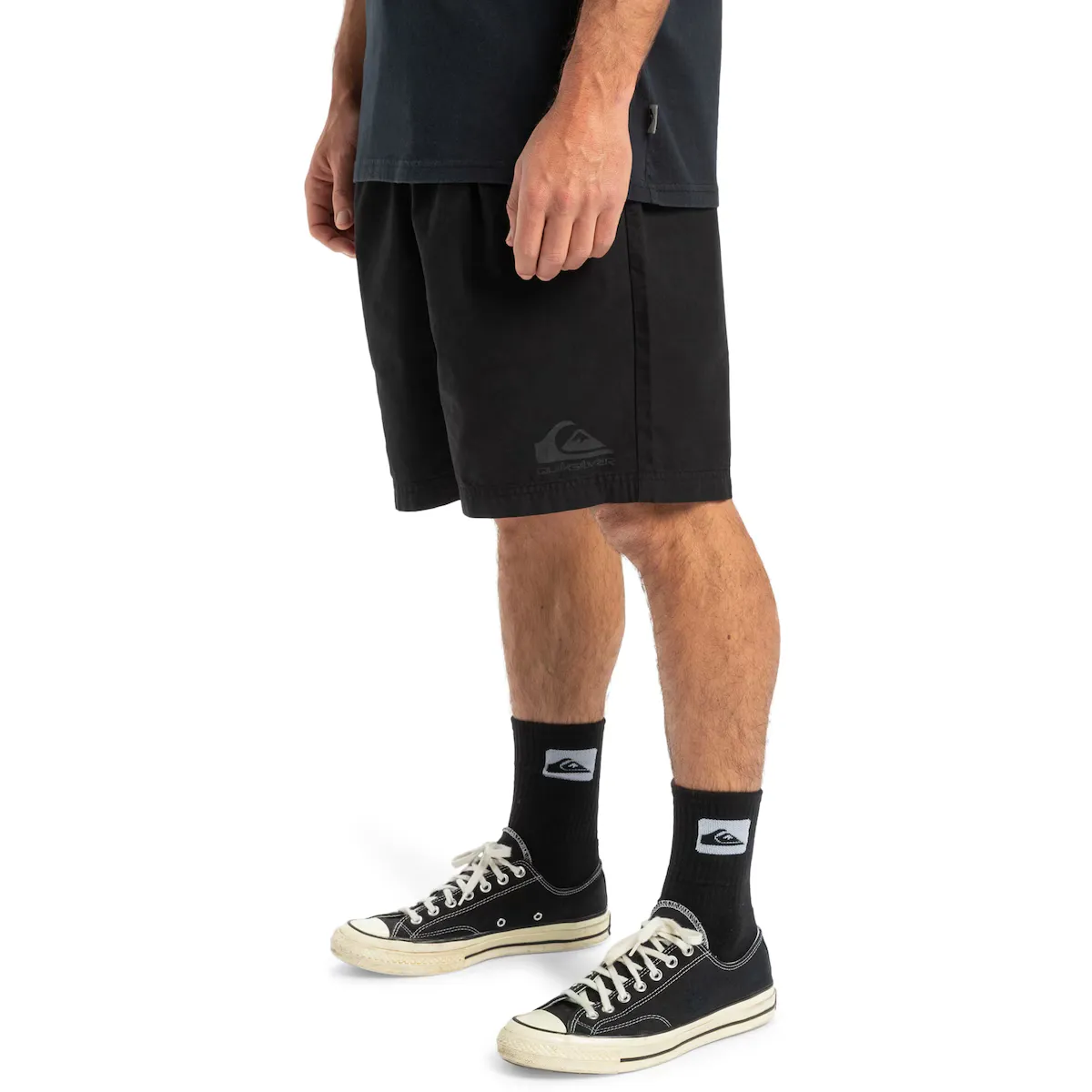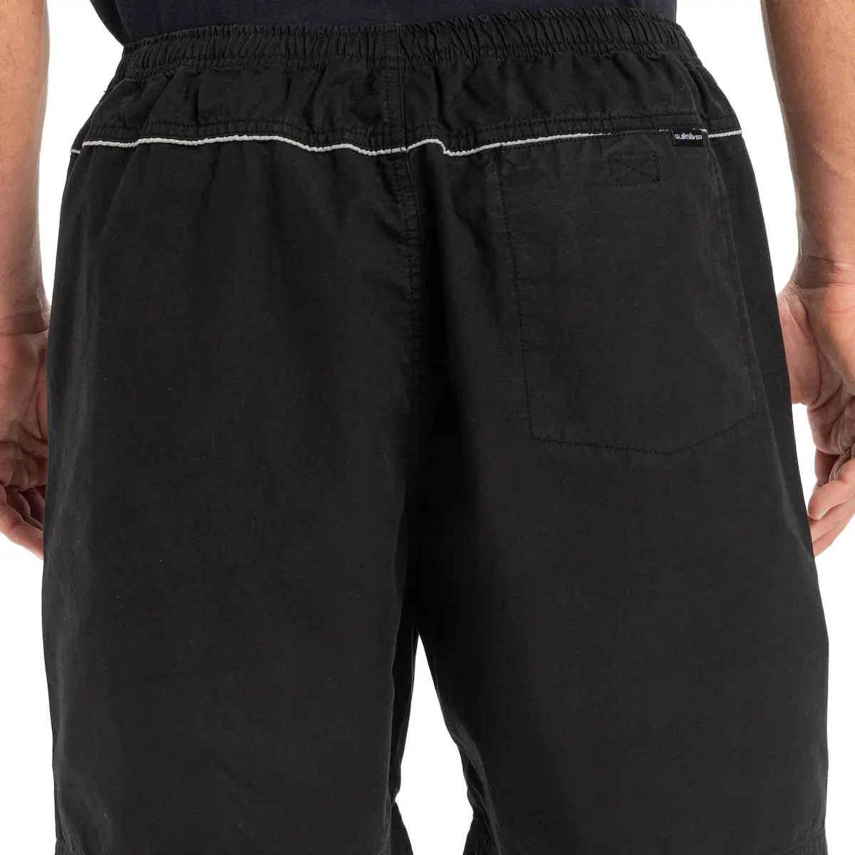 Короткие плавки для мужчин. Характеристики включают: Ткань: рипстоп из хлопка, Крой: эластичный крой, Пояс: эластичный пояс с застежкой-молнией, Длина: 48 см - короткие, Застежка: регулируемый шнурок, Карманы: боковые карманы, задние карманы, карманы-«cargo» и Бренд: Quiksilver.