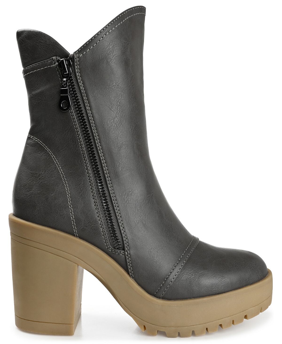 Ретро-привлекательность ботильонов на платформе 70-х годов, обновленная для современных девушек, коллекция Jaquie by Journee. Этот силуэт отличается роскошным верхом, массивной рифленой подошвой и блочным каблуком. Диагональные молнии на щиколотке придают свежий вид, а стелька делает их идеально подходящими.