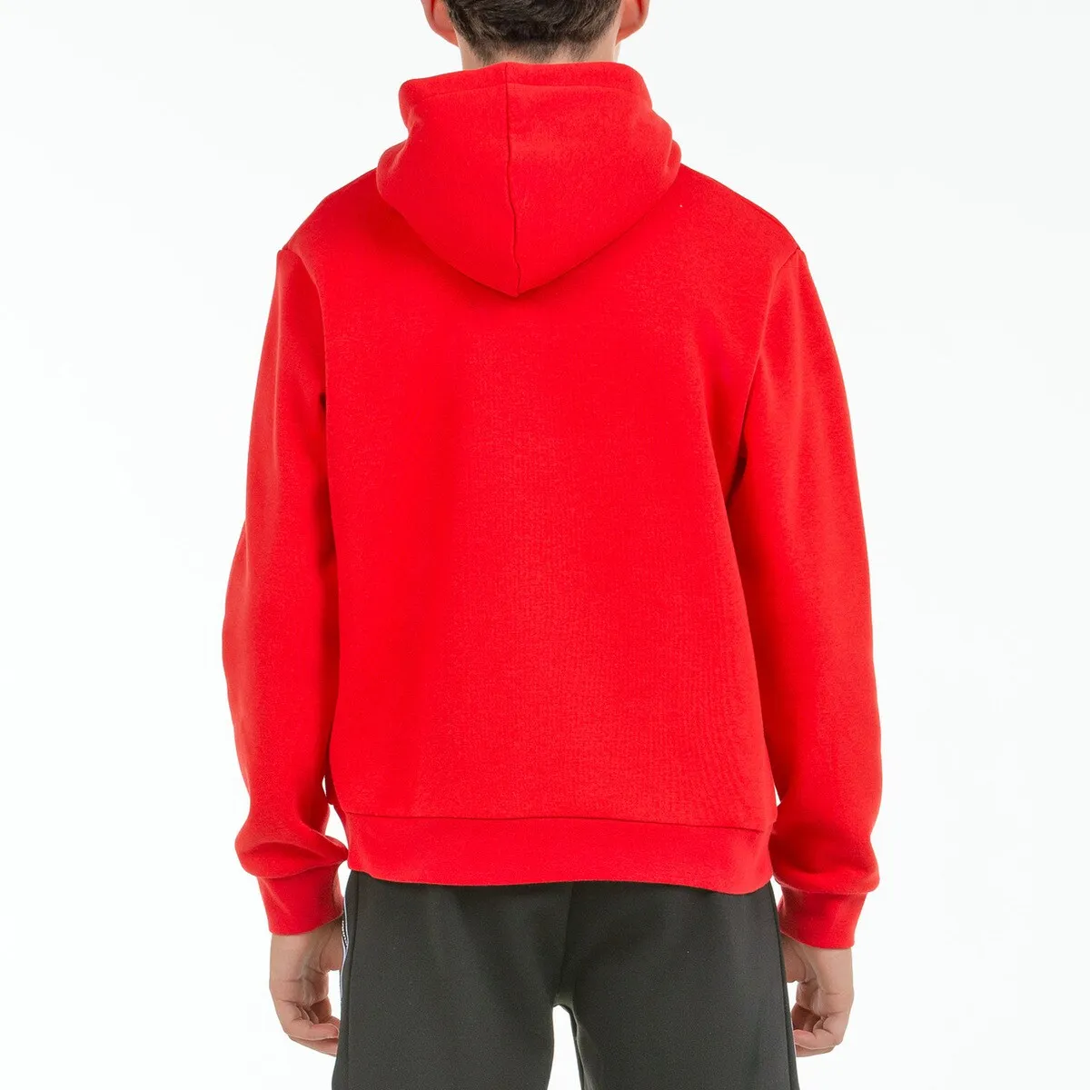 Флисовый худи с капюшоном и кенгурятником. Имеет вырез на груди с напечатанным логотипом. Манжеты и низ из ребристой ткани.