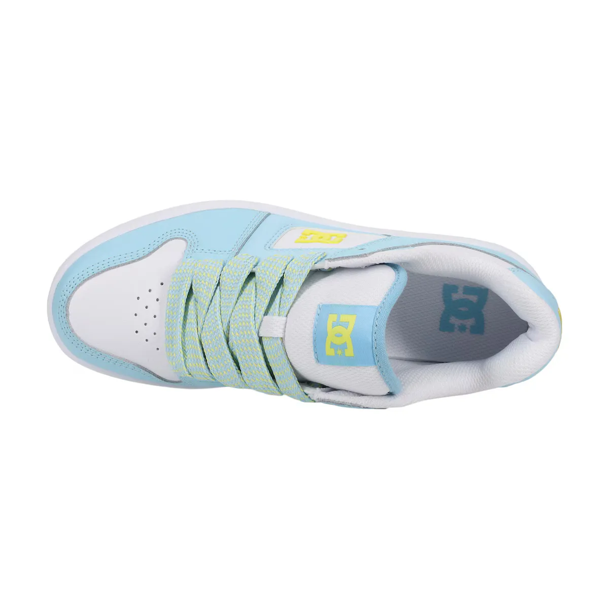 Кроссовки для женщин. Характеристики включают: верх: кожаный материал [коровья кожа], удобный и мягкий воротник и язычок, внутренняя сетка из ткани для большего комфорта, обивка из EVA, прочная резиновая подошва, устойчивая кabrasion, и рисунок торговой марки DC на подошве.