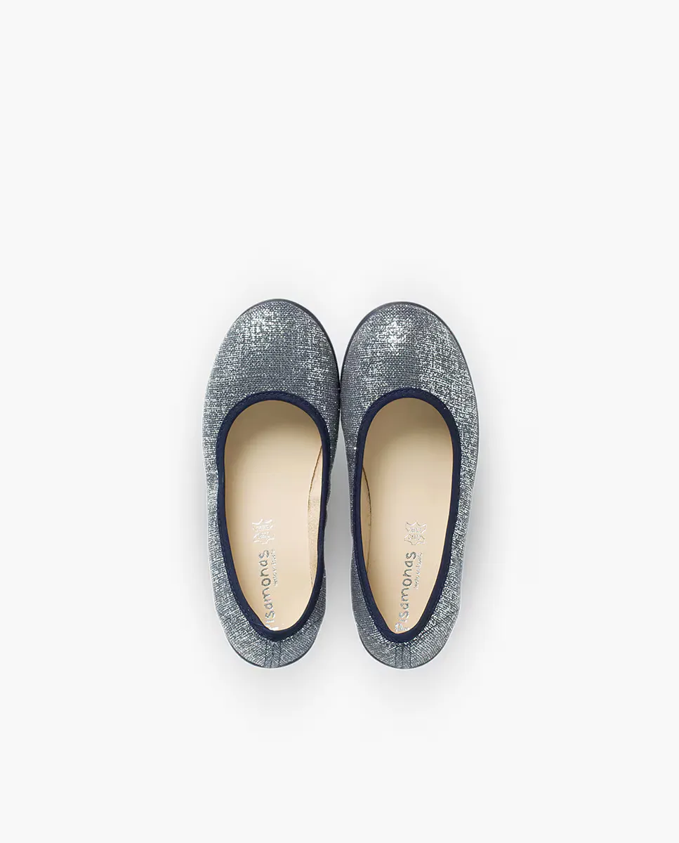 Балетки для девочек из металлизированного льна Pisamonas, темно-синий