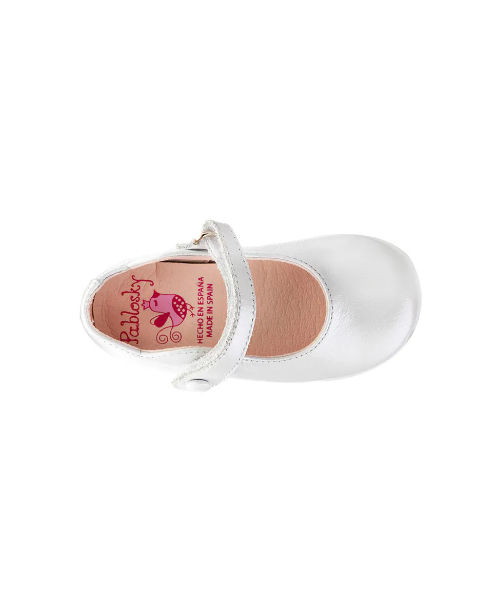 Туфли Мэри Джейн из кожи для девочки с застежкой-липучкой Pablosky, белый