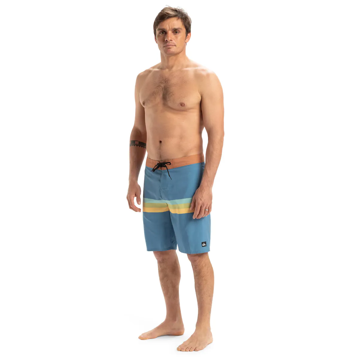 Шорты для плавания для мужчин. Характеристики включают: Ткань: 100% переработанный полиэстер, Восстановленный супersuede: поддерживает высокую производительность и низкий углеродный след, Этот продукт изготовлен из остаточных материалов и текстильных отходов, шаг к циркулярной экономике., Водонепроницаемость: водонепроницаемые, Обработка: водоотталкивающее покрытие без PFC, Крой: крой с низким округлением, Прямой крой штанин, Пояс: фиксированный пояс, Застежка: регулируемая шнуровка, Молния: производственная молния, Длина: длина 51 см, средняя длина, Карманы: Задний карман с клапаном и застежкой на липучке, Бренд: классический логотип горы и волны, Другие характеристики: Подтвержденный комфорт, Неправильный стиль, Эластичный шнурок для ключей внутри кармана, Переработанная нить и Made Better.