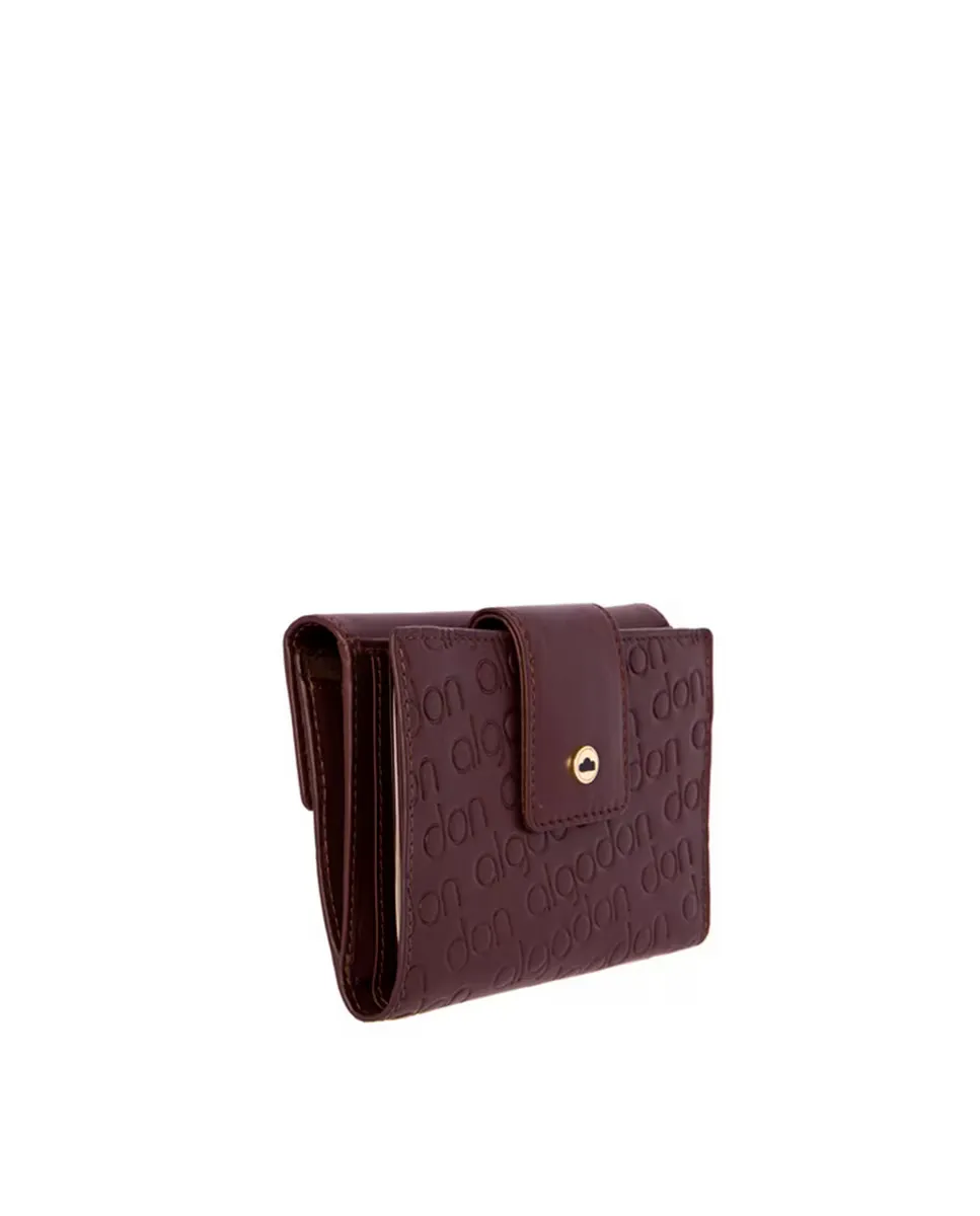 Кошелек с отделением для карт, изготовленный на 100% из органической кожи от Don algodón. Снаружи имеется тисненый логотип и кнопочная застежка. Внутри есть места для карт, документов и карман для монет. Имеется пластиковое окно для документов. Размеры 14x3x10 см.