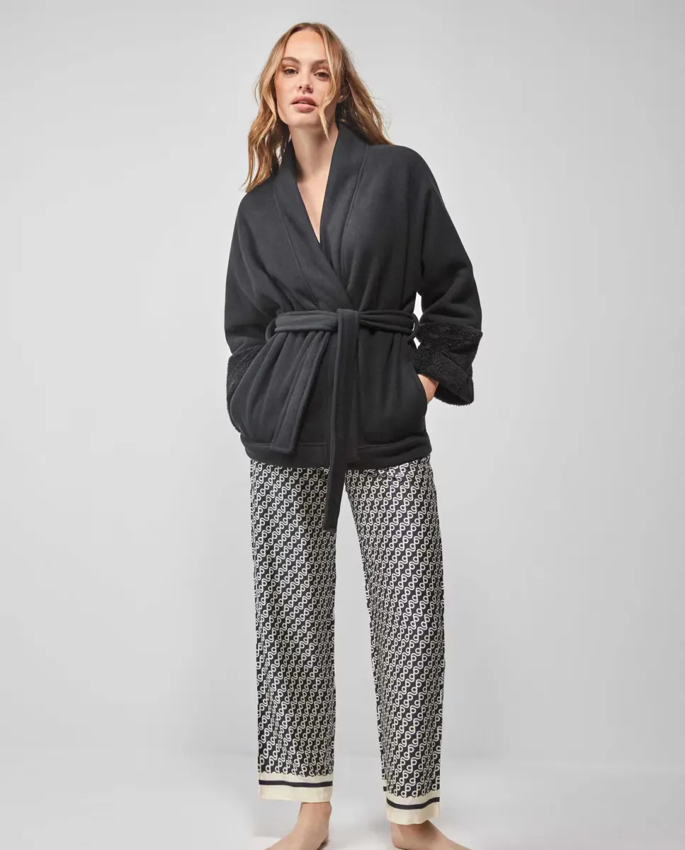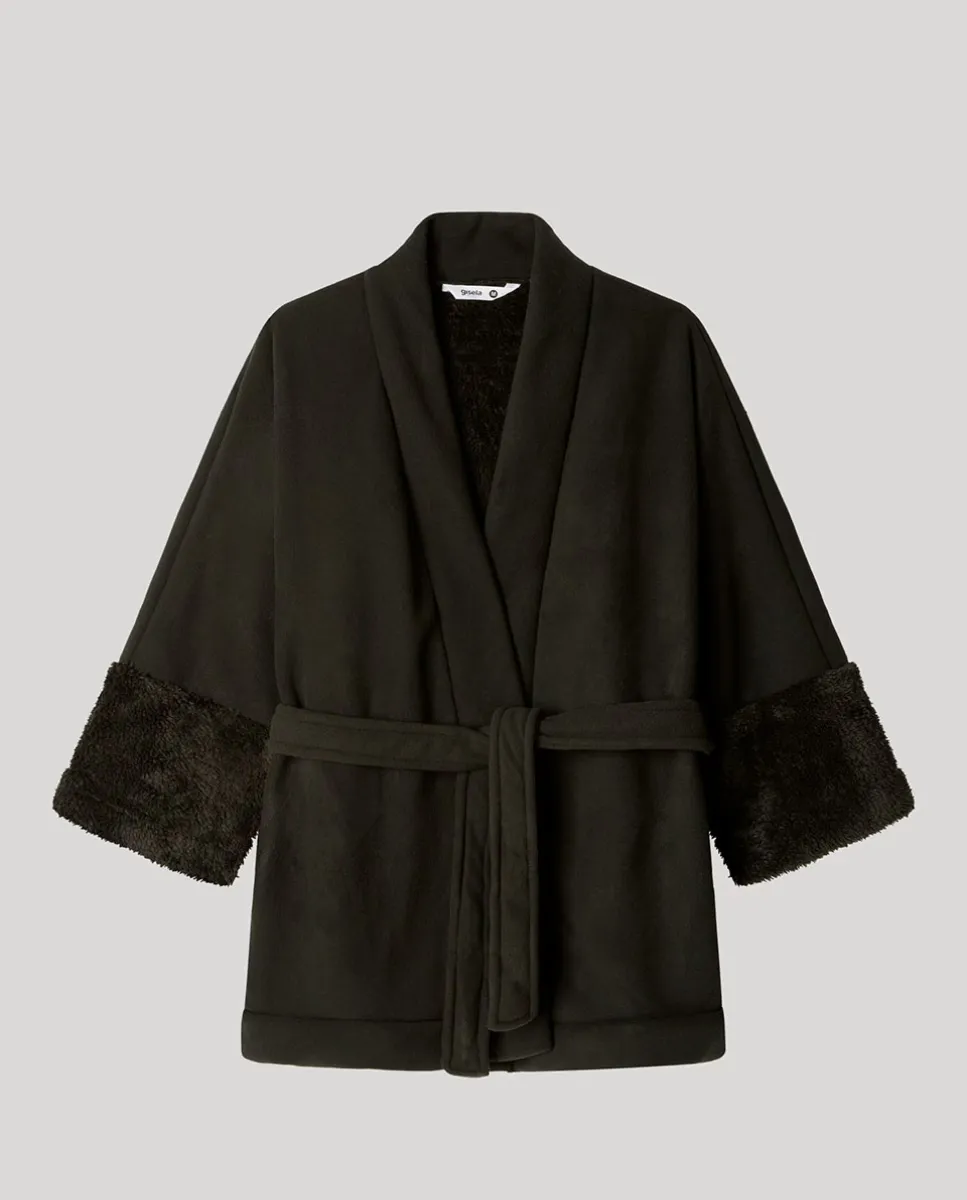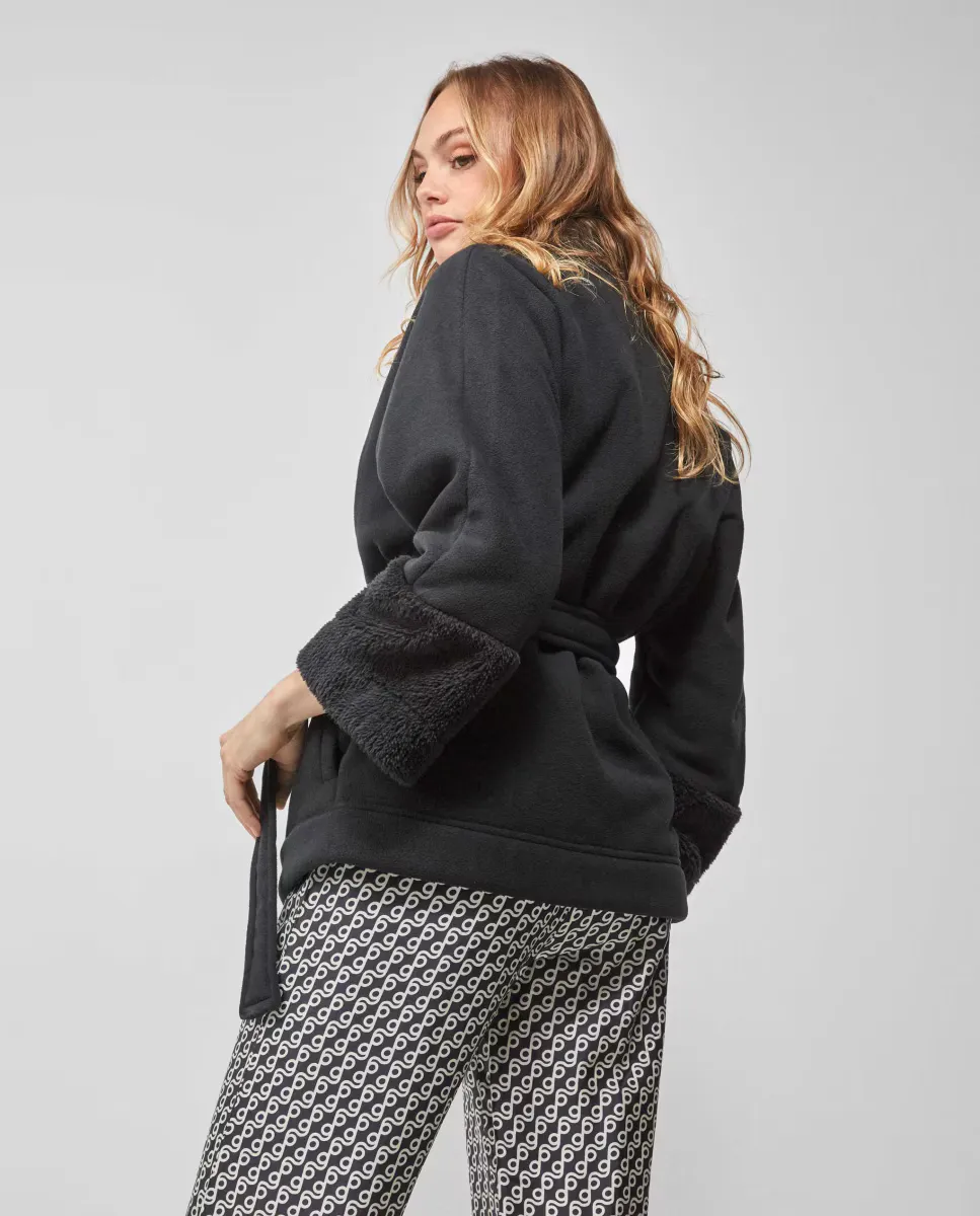Короткий женский флисовый халат Gisela, черный