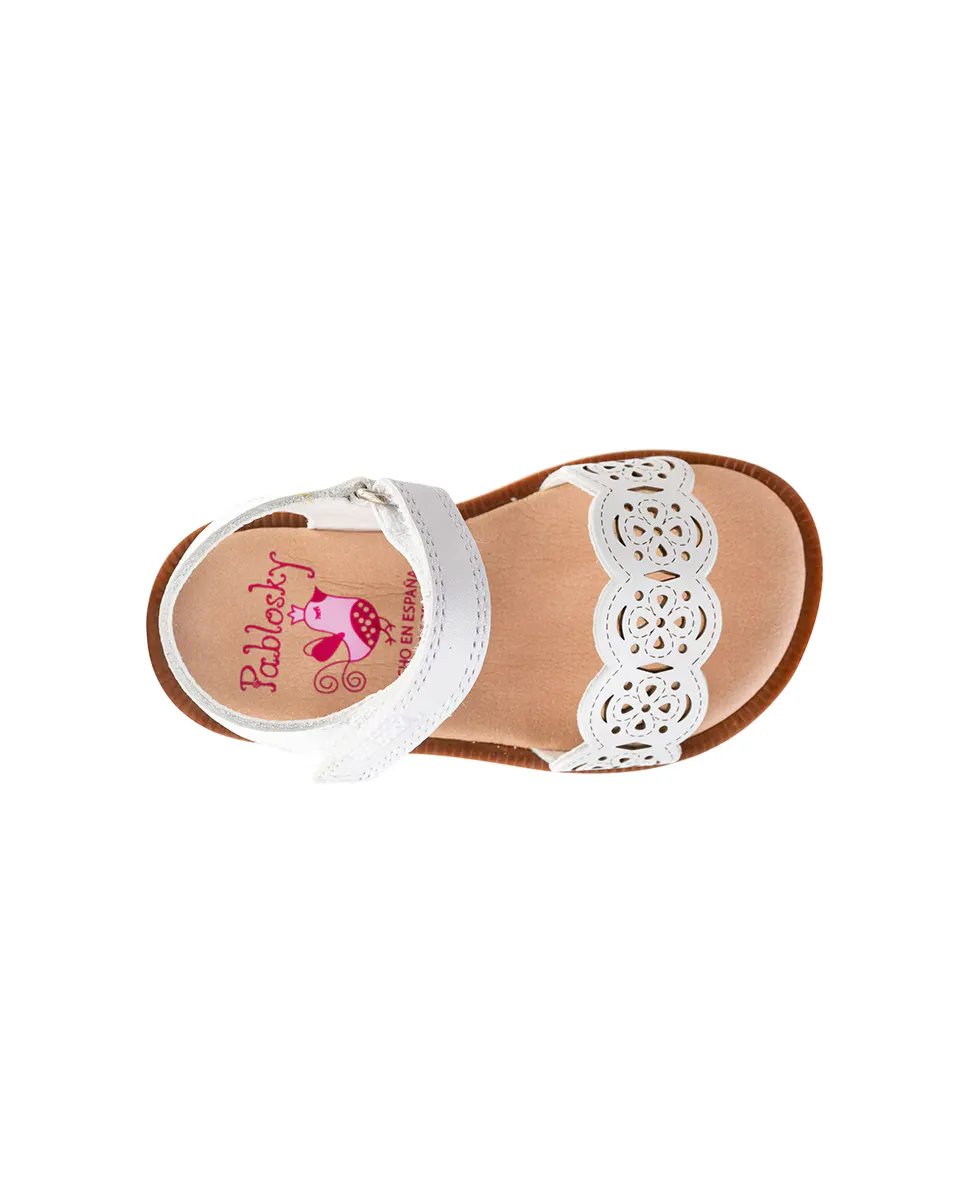 Сандалии из кожи для девочек с застежкой-липучкой Pablosky, белый