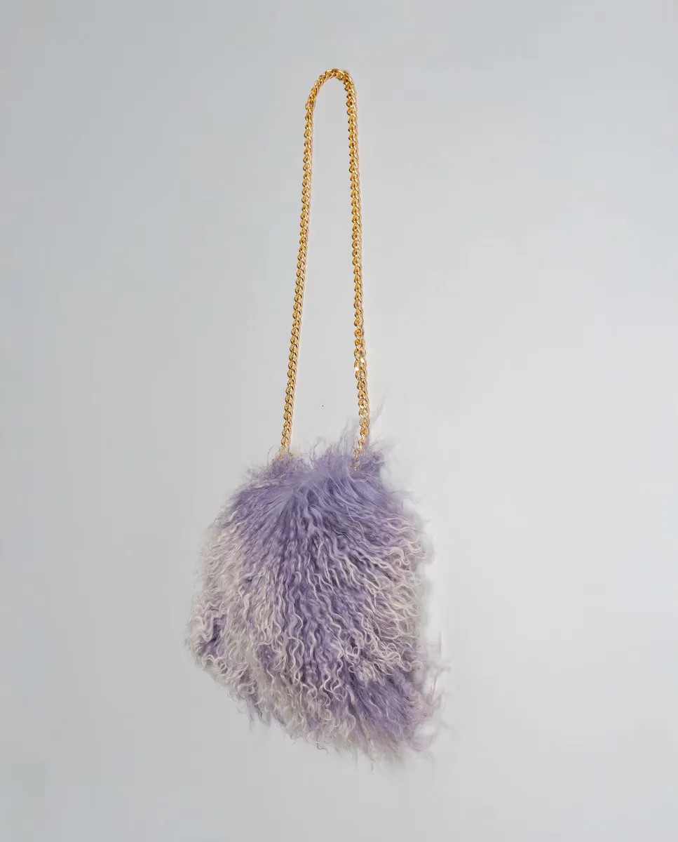 Сумка из кожи кордета Тибета с длинным волосом синего цвета. Наплечный ремень. Все изделия изготавливаются одно за другим вручную в Испании высококвалифицированными специалистами в области кожи. Все они изготовлены из 100% испанской кожи очень высокого качества.
