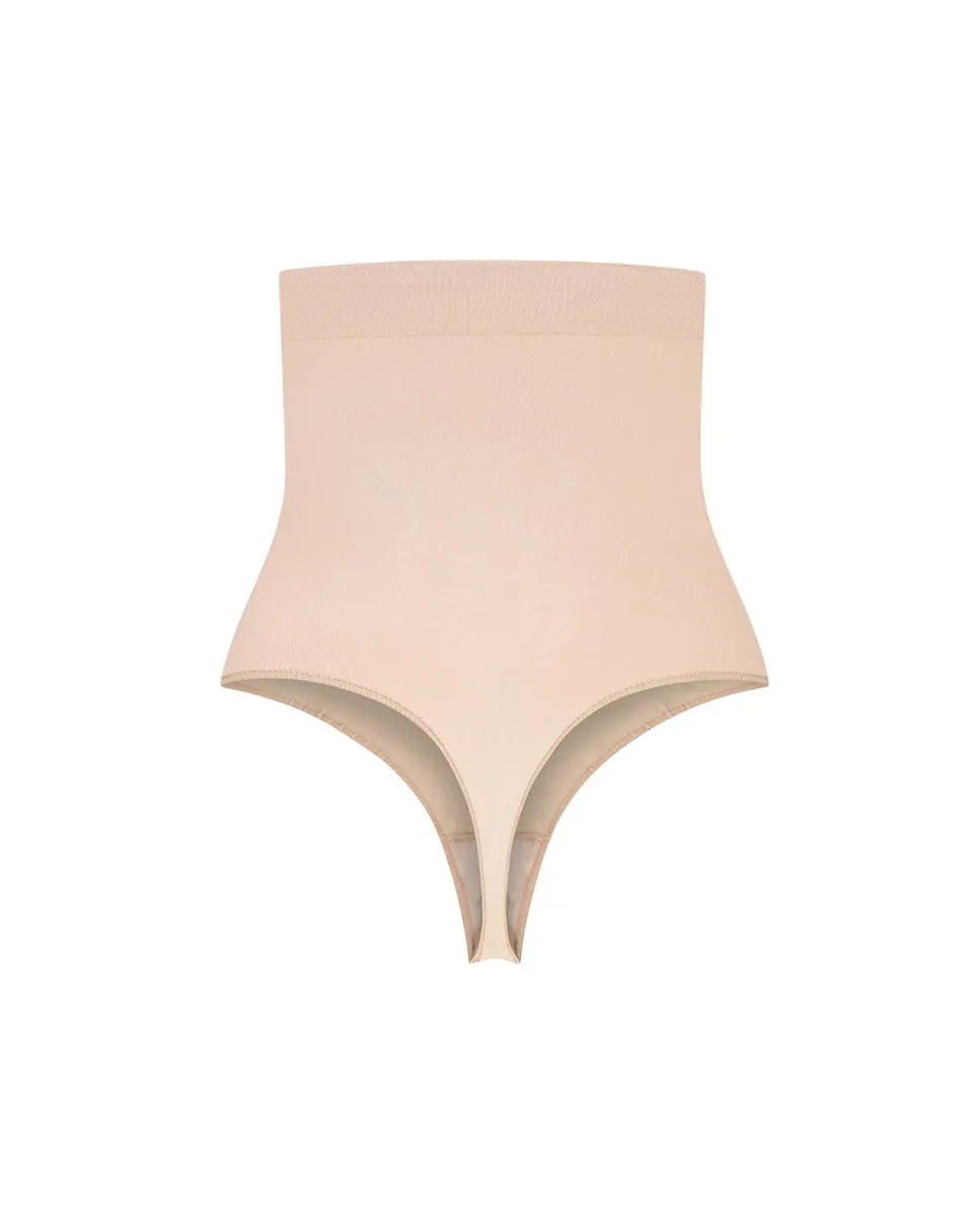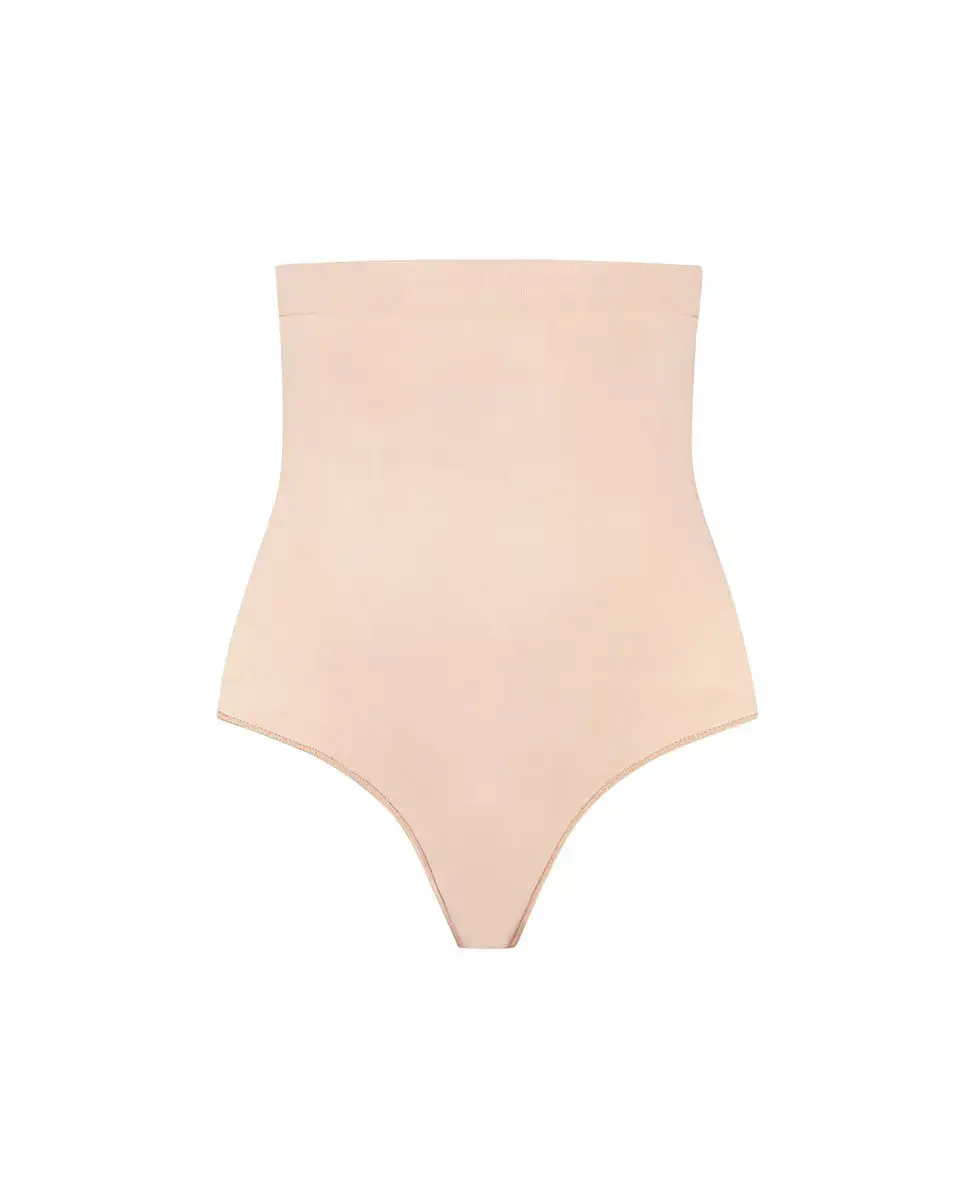 Трусики-танга с высокой талией, без швов, формируют и подчеркивают силуэт благодаря своей ткани, мягкой на ощупь, но с высоким уровнем контроля. Сжимают живот и адаптируются, не смещаясь, благодаря тонкой силиконовой ленте, которая обрамляет верхний край.