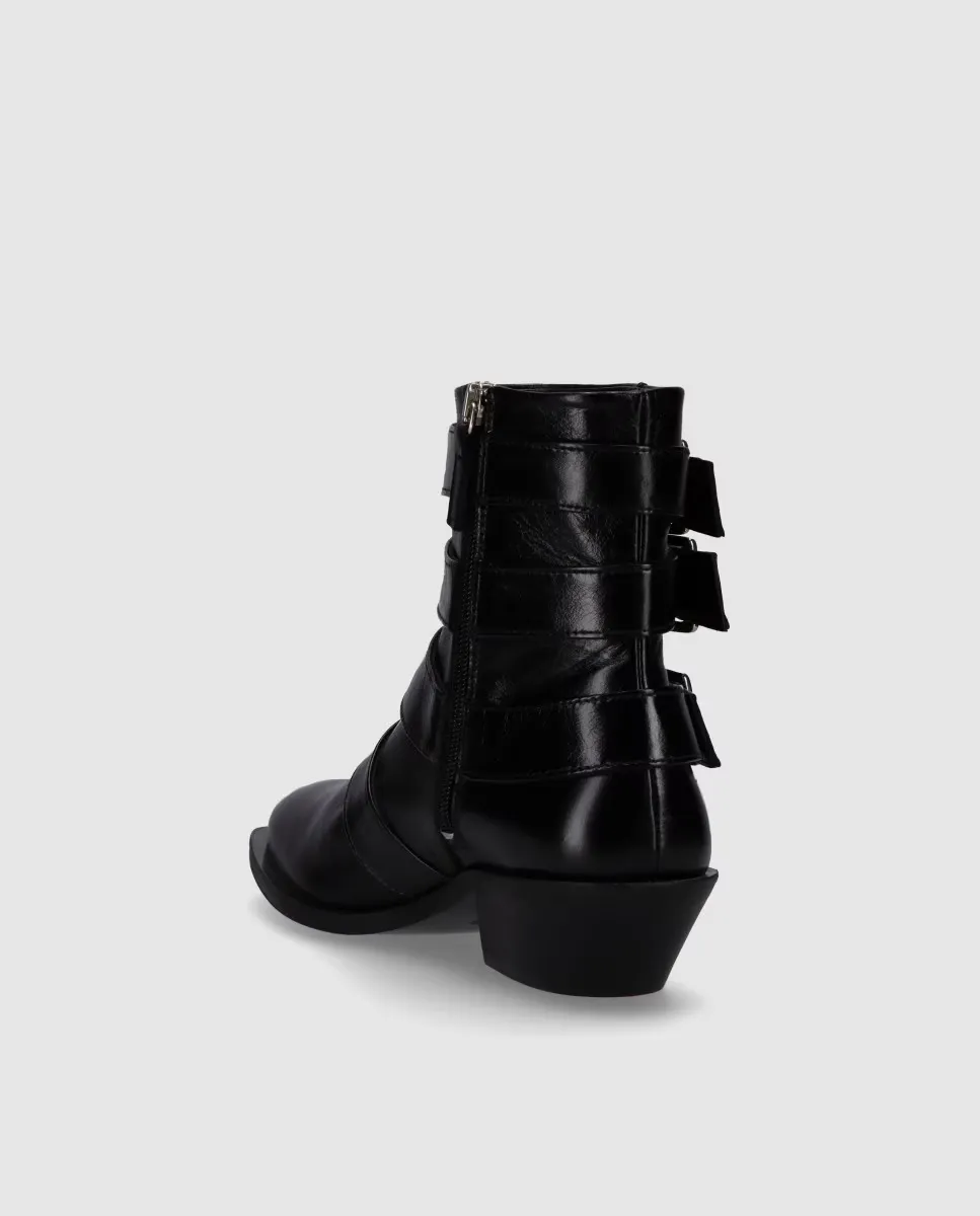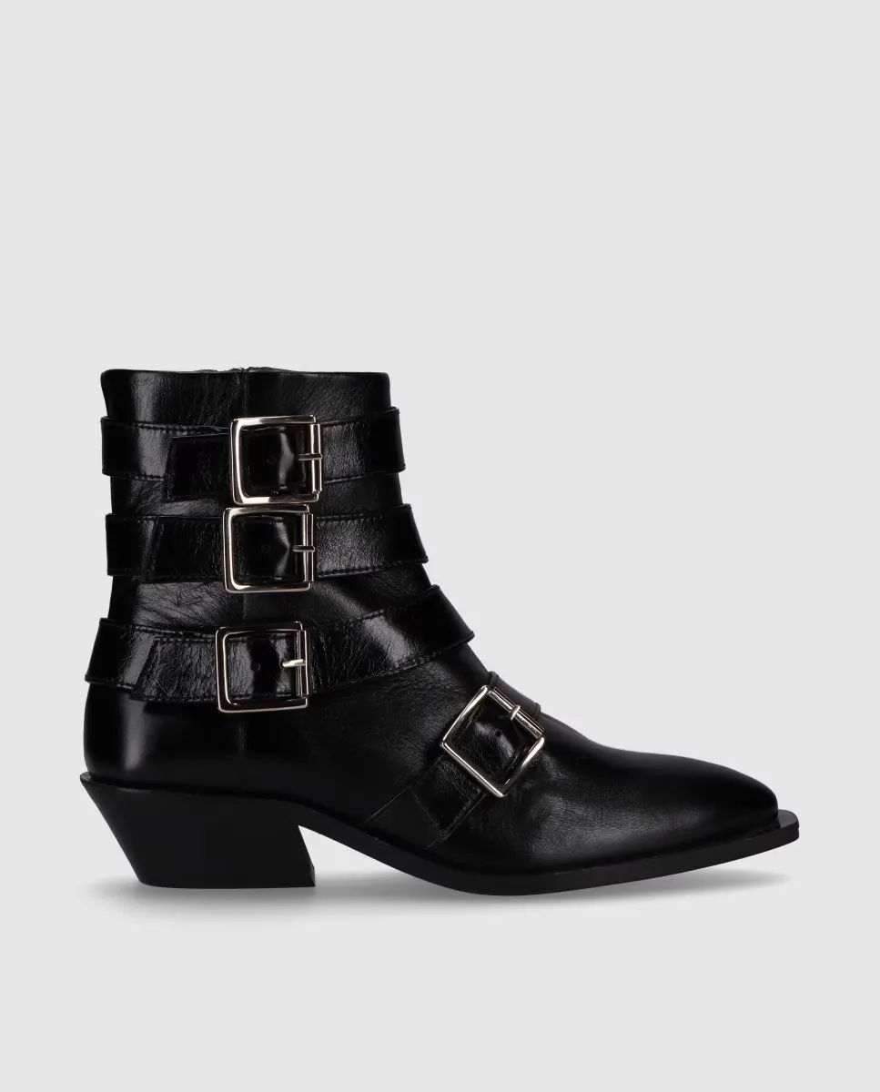 Женские кожаные ботильоны с пряжками Alohas, черный