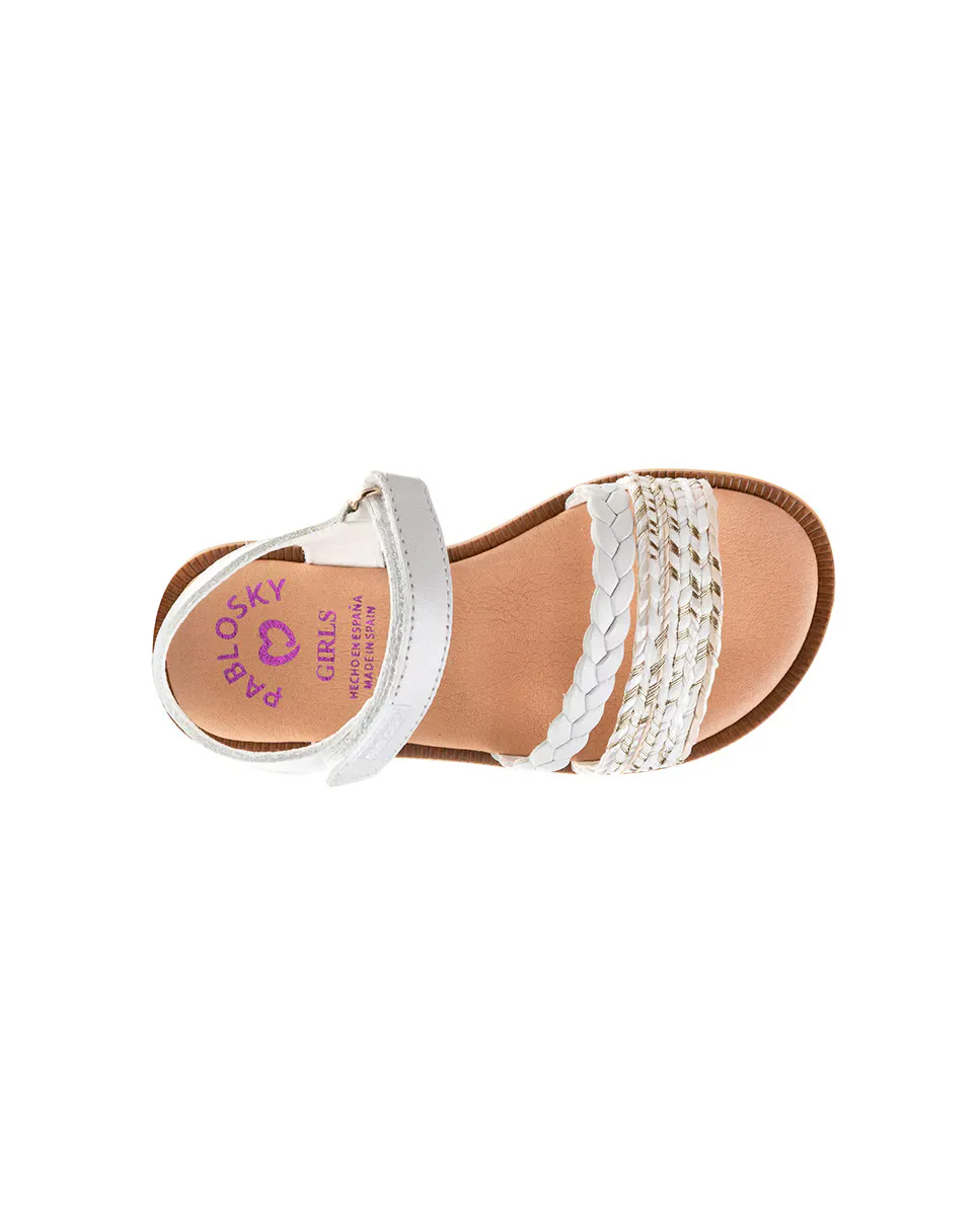 Сандалии кожаные для девочек с застежкой-липучкой Pablosky, белый