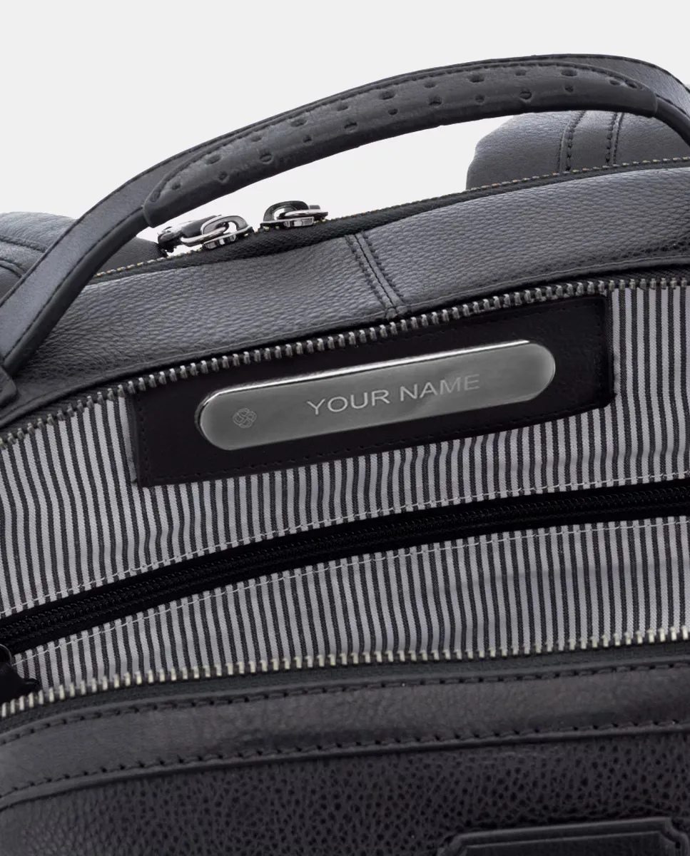 Сумка, изготовленная из коровьей кожи. Внутри имеется металлическая пластина для персонализации с помощью гравировки вашего имени или специального сообщения. Пожалуйста, укажите текст, который вы хотите гравировать на пластине, в поле ЗАМЕТКИ при оформлении заказа. Поддерживает ноутбук размером 15,6 дюймов и имеет два отсека, держатель для карандашей, держатель для карточек, систему крепления на ручке чемодана и открытие заднего отсека для ноутбука на 180 градусов. Отличная функциональность, элегантность и долговечность благодаря использованию благородных материалов. Элегантность и бесконечная красота для ваших поездок, бизнеса или отдыха. 39 (высота) x 31 (длина) x 8 (ширина) см.
