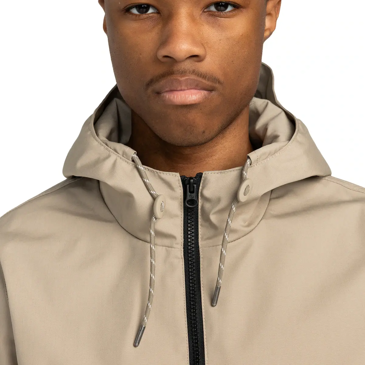 Водонепроницаемая куртка Shell для мужчин. Особенности: Коллекция: основная коллекция, Ткань: ткань из переработанного полиэстера 65% и хлопка 35% (215 г/м2), Сознательный выбор: переработанный полиэстер GRS, Обработка: без PFC, Технология: водоотталкивающая, Устойчивость к ветру, Водонепроницаемость: долговечная водоотталкивающая обработка [DWR] 5K для защиты, Крой: обычный, Воротник: капюшон с воротником, Рукава: длинные рукава, Капюшон: регулируемый капюшон, Подкладка: поплин из хлопка и полиэстера, Застежка: фронтальная молния, Карманы: карманы с отверстием, Внутренний карман, Бренд: светоотражающий принт на груди, Другие детали: шнурок и силиконовый регулятор, тканевый патч.