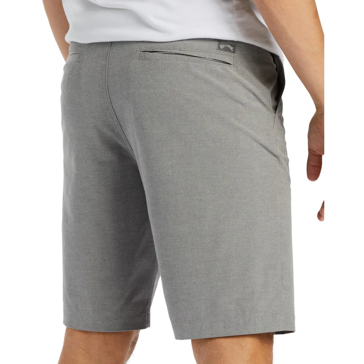 Мужские плавательные шорты Bermuda. Характеристики включают: Ткань: ткань с четырёхсторонней эластичностью, смесь нейлона, эластана, органического хлопка и переработанного полиэстера, Водонепроницаемость: микрорепеллентная ткань быстросохнущая, Крой: обычный крой, Длина: длина 53,3 см - короткие, Талия: внутренняя талия из жаккарда Crossfire, Карманы: диагональные передние карманы и правый задний карман с молнией, Застежка: застежка на кнопку, Бренд: этикетка с волной внизу, Этикетка с брендом на правом заднем кармане, Другие характеристики: стиль чинос, Изготовлено из переработанных пластиковых бутылок PET, Этикетка Recycler эластичная и прямоугольная на левой стороне талии.