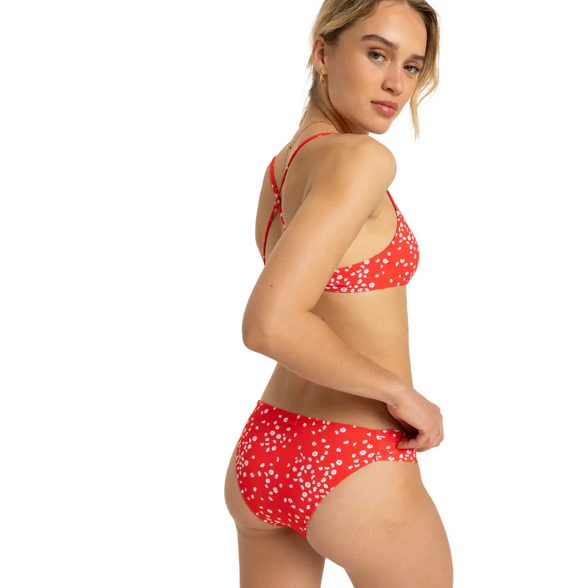 Топ бикини средней посадки для женщин. Характеристики включают: Коллекция: PT Beach Classics, Ткань: Эластичная, мягкая и прочная ткань, смесь 85% переработанного полиэстера и 15% эластана, Дизайн: Атлетический треугольник, Вырез: V-образный вырез, Поддержка: обычная поддержка, Уплотнение: Съемные подкладки, Ремешки: регулируемые ремешки с завязками, Застежка: Застежка на завязках, Покрытие: среднее покрытие, Размер чашки: Лучше всего подходит для чашки A/B/C, Бренд: резиновая нашивка ROXY, Другие особенности: Перекрестные ремешки на спине для лучшей поддержки во время движения, и Внешний вид продукта может варьироваться в зависимости от ситуации с рисунком.