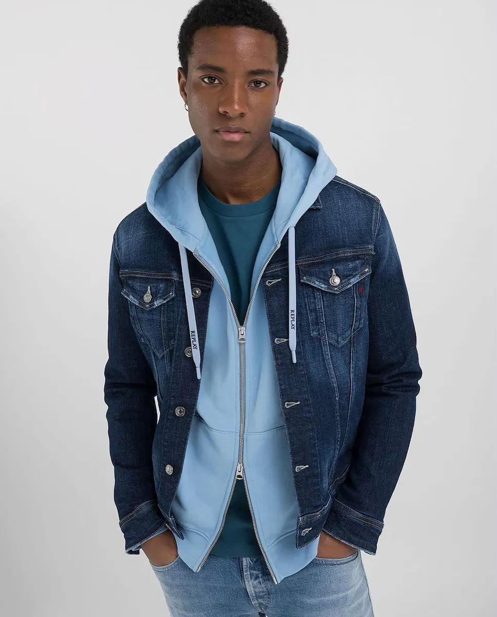 Мужская джинсовая куртка с карманами Replay, темно-синий