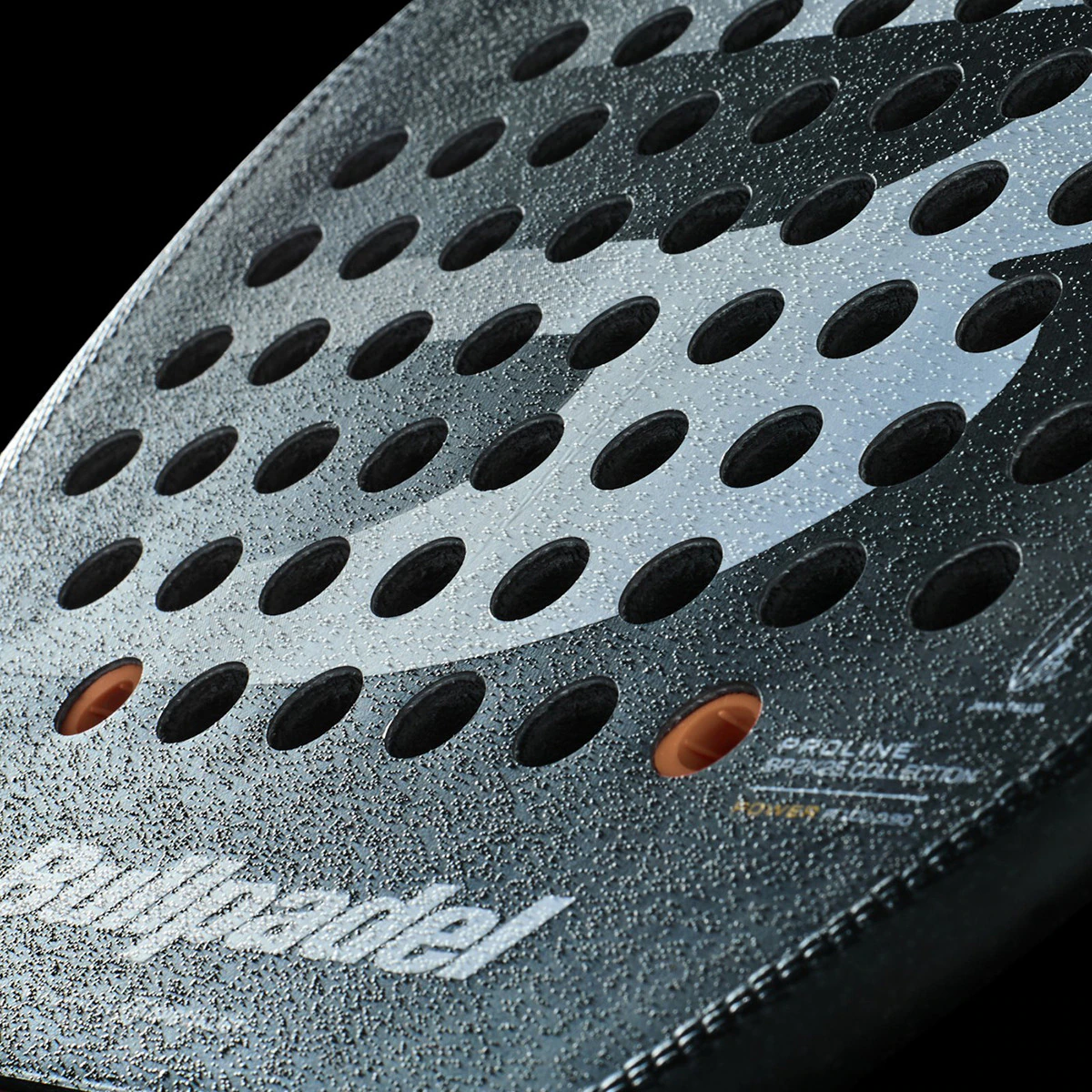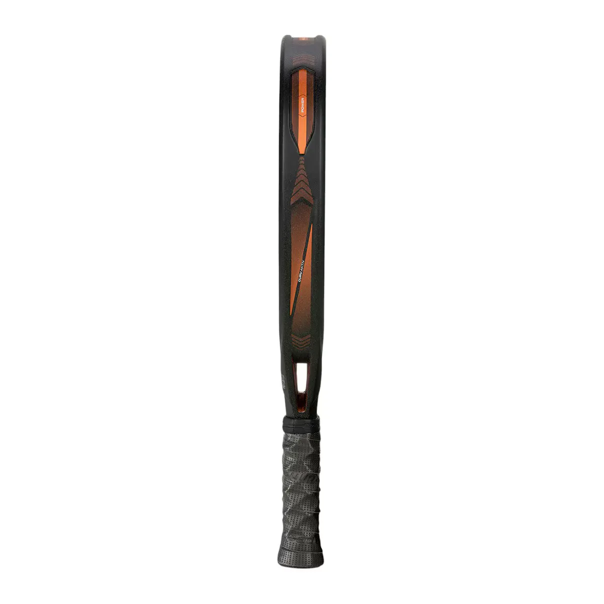 Новая Vertex 04 представляет собой ракетку в форме алмаза, с максимальной мощностью и шероховатой поверхностью Top Spin. Она разработана для профессиональных игроков или продвинутых. В ее конструкции реализованы два новых концепта: система CURVAKTIV. Ее закрученная структура обеспечивает дополнительную прочность к скручиваниям. Благодаря повороту ее сторон, мы можем вводить переменную секцию в боковую часть ракетки. Мы смогли уменьшить секцию по сравнению с рамкой vertex03, увеличив жесткость, но также добились того, что секция расширяется вдоль всей длины, обеспечивая более равномерную передачу напряжений по всей ракетке. Это лучшее распределение вибраций и усилий также поддерживается соединением CURVAKTIV с AIR POWER. AIR POWER является естественной эволюцией системы Air React Channel. Это канал, который мы создаем через полую деталь в нижней боковой части ракетки. Эта полая деталь работает лучше, чем массивная, так как, будучи сформированной из меньшего количества материала, она менее подвержена деформациям, что делает структуру более прочной. Внешний сердечник состоит из углерода Xtend Carbon 12K, его внутренний сердечник изготовлен из новой резины MultiEva, а также рамки CarbonTube из углеродного волокна 100%. Оснащен системой тяжелых пластин CustomWeight, позволяющей изменять баланс ракетки в зависимости от потребностей каждого игрока. Предусмотрена система Vibradrive для поглощения вибраций. Кроме того, имеется рукоятка Hesacore, которая снижает усилия, вибрации и вероятность травм.