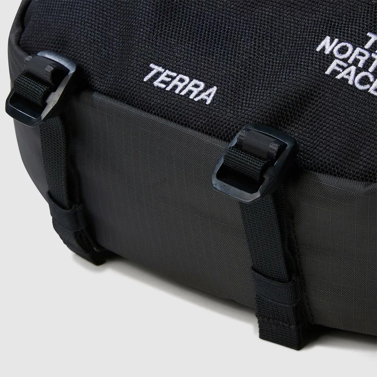Поясная сумка Terra — это необходимый аксессуар для хайкинга, компактного дизайна на 3 литра, с мягкой задней панелью, внутренним карманом на молнии, внешним карманом с скрытой молнией, регулируемым тканевым ремнем и компрессионными ремнями.
