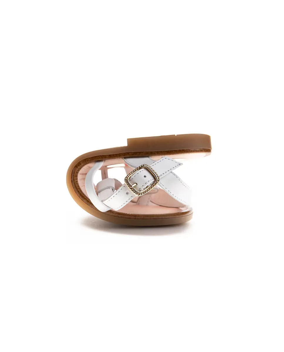 Сандалии кожаные для девочек с пряжкой Pablosky, белый