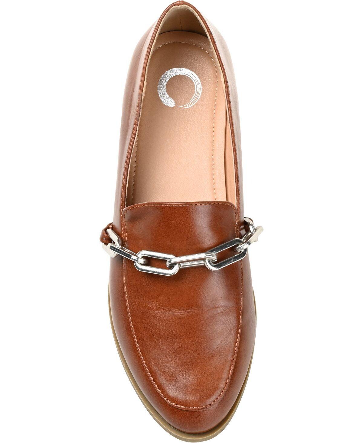 Взгляд девушки-босса, производящий впечатление. Лоферы Madison от Journee Collection изготовлены из мягкой веганской кожи и имеют по-настоящему комфортную стельку из пеноматериала, обеспечивающую комфорт и поддержку в течение всего дня. Деталь фартука и ремешок-цепочка на союзке смело завершают этот классический стиль.