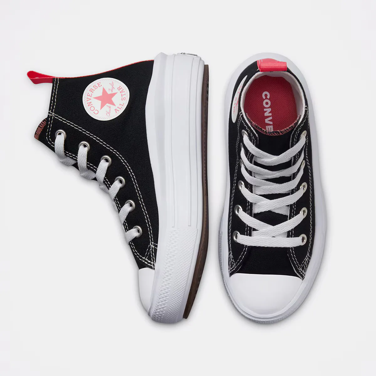 Ультралегкий комфорт. Новые Chuck Taylor All Star Move придают больше роста и индивидуальности. Яркая и взрывная платформа с меньшим весом придает оригинальный вид. Многоцветный патч All Star на щиколотке и лямка на пятке выделяются на фоне классного холщового верха. С мягкой и пружинистой стелькой эти кроссовки готовы к игре весь день. Высокие холщовые кроссовки на платформе. Мягкая стелька для обеспечения поддержки и комфорта на протяжении всего дня. Петля на пятке для легкости надевания и снятия. Взрывная и легкая платформа для большего подъема. Стандартная нашивка на языке и задний логотип.