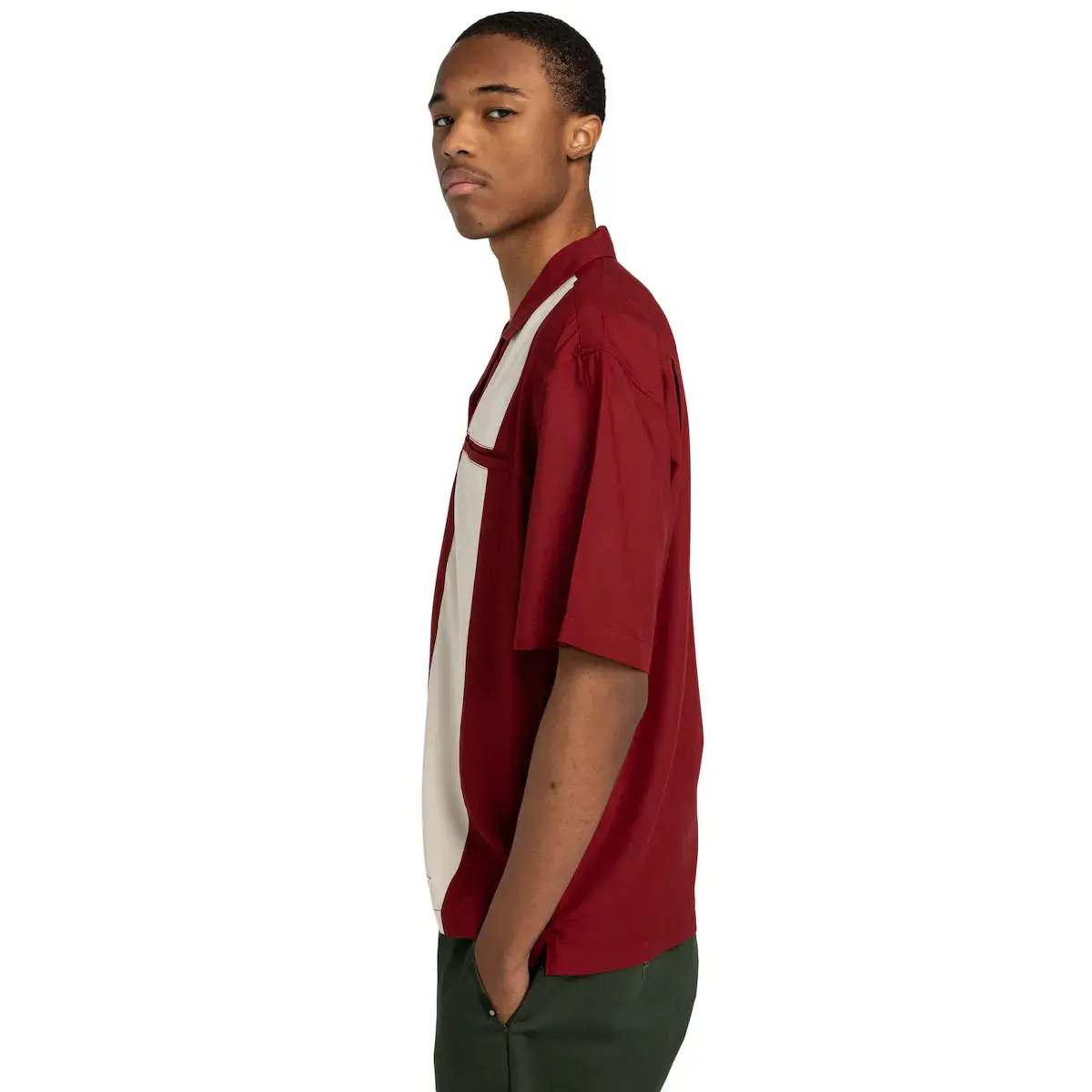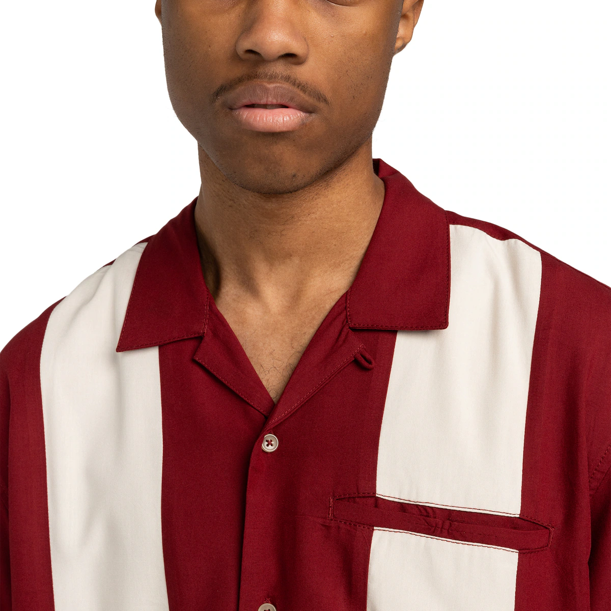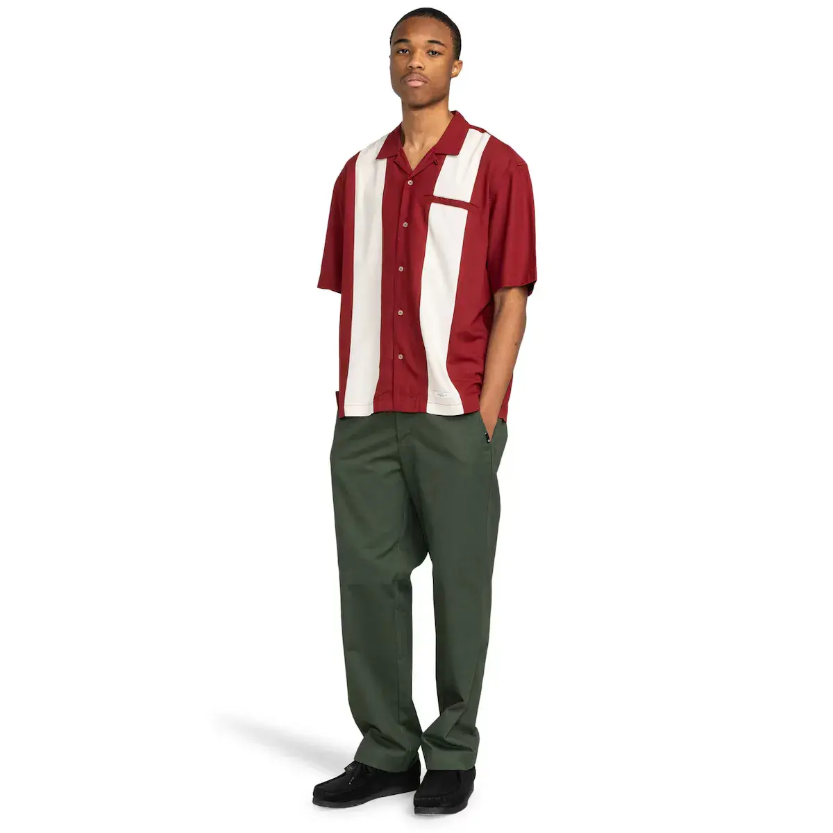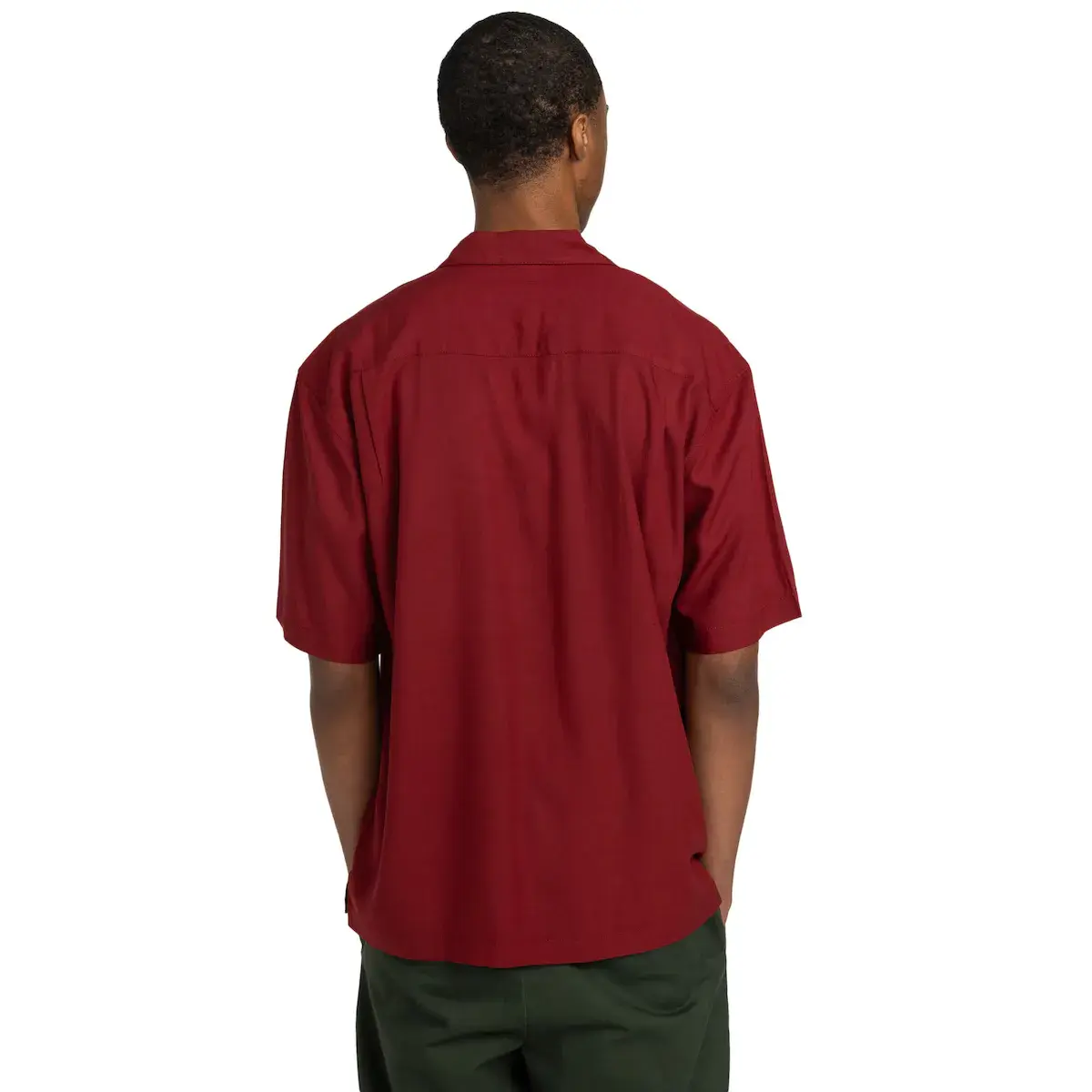 Рубашка с короткими рукавами для мужчин. Характеристики включают: Коллекция: главная коллекция, Ткань: одноцветный вискозный материал [125 г / м2], Осознанно от природы: вискоза с сертификатом ECOVERO Lenzing, Крой: свободный крой, Воротник: воротник типа рубашка, Рукава: короткие рукава, Застежка: застежка с прорезной планкой и пуговицами, Карманы: накладной карман на груди, Бренд: тканевая этикетка в нижнем левом углу, Прямоугольная этикетка на боковом шве, Другие детали: миникалитка для верхней пуговицы, полосатый принт, прямой подол, боковые разрезы и Сертификат: сертификат ECOVERO Lenzing.
