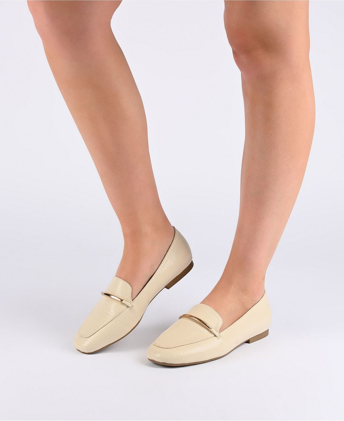 Непринужденные и нарядные лоферы Wrenn by Journee Collection. Эти лоферы без шнуровки из искусственной кожи дополнены фурнитурой и зубчатой ​​линией верха, придающими свежий вид.