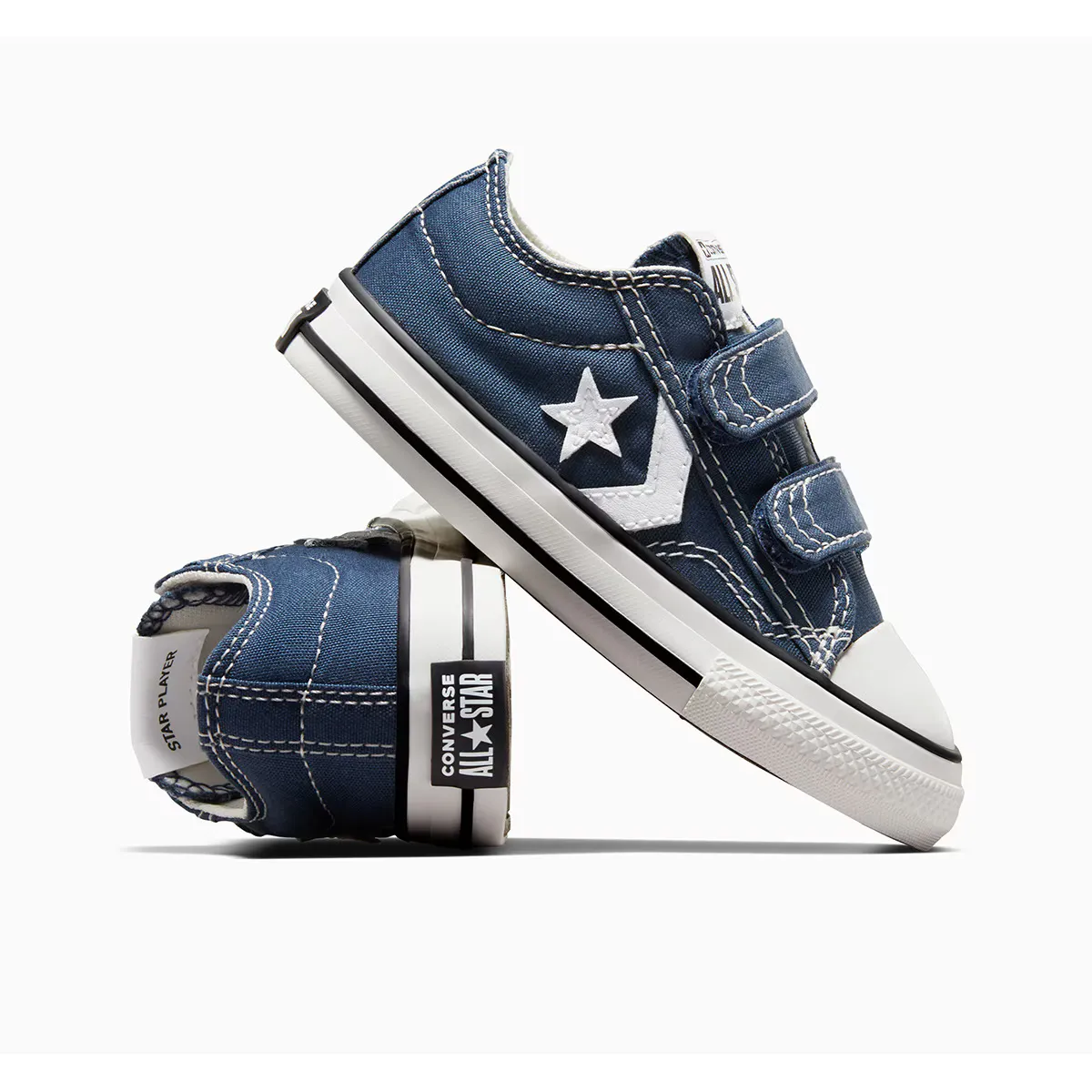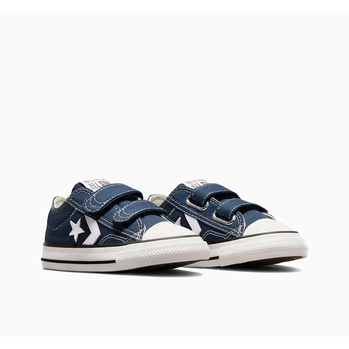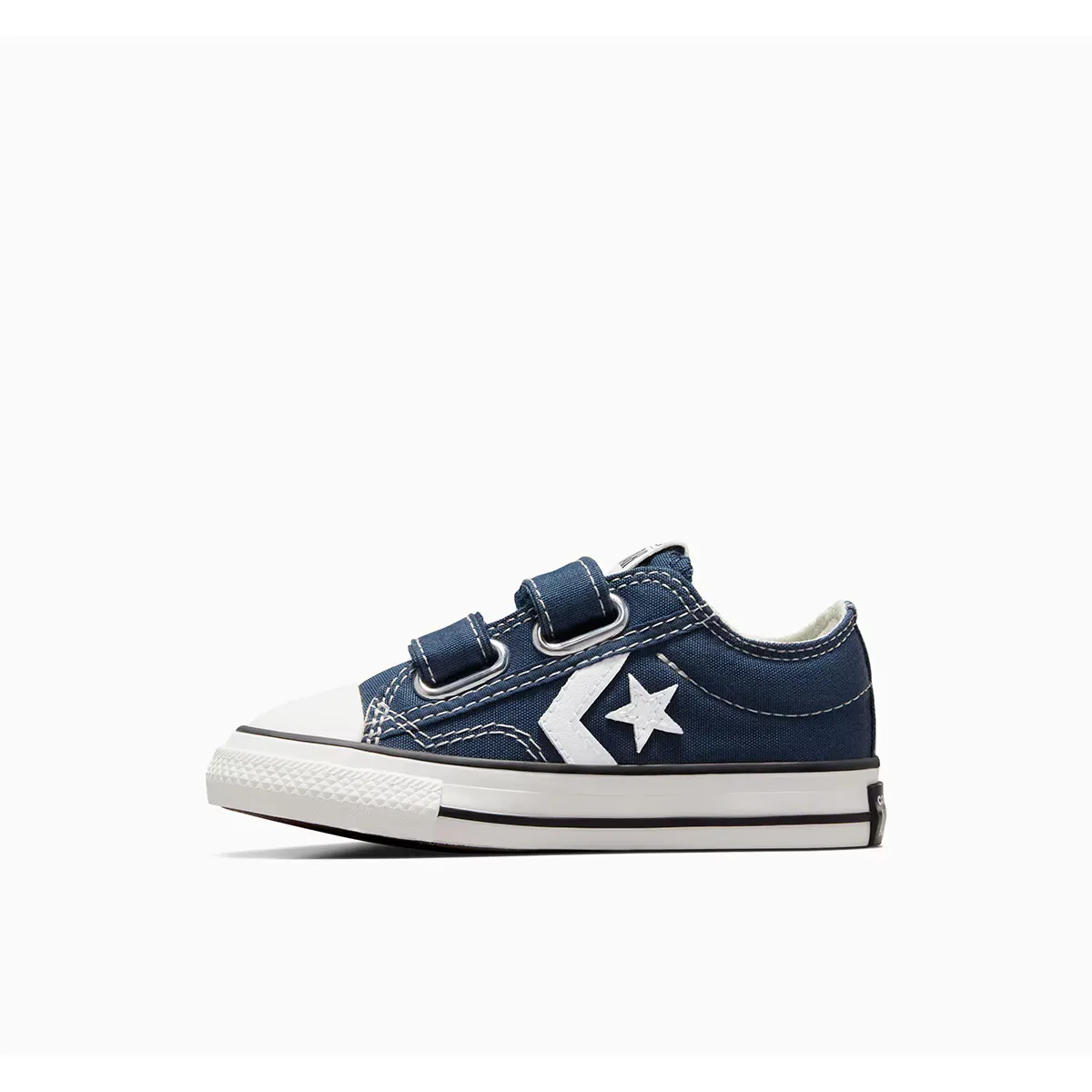 УБРАННАЯ ЗВЕЗДА. Добавьте этот базовый элемент к вашему любимому образу с кроссовками Star Player 76 для детей. Двойные регулируемые ремешки удобны и позволяют легко надевать и снимать их, в то время как обитая область лодыжки и амортизация из пены Converse Hybrid обеспечивают движение от автобусной остановки до выхода из школы. Кроссовки низкого кроя из прочного канваса. Амортизация из пены Converse Hybrid обеспечивает комфорт на протяжении всего дня. Двойные ремешки для легкого надевания и снятия. Обитая область лодыжки для большего комфорта. Задний логотип для винтажного стиля.