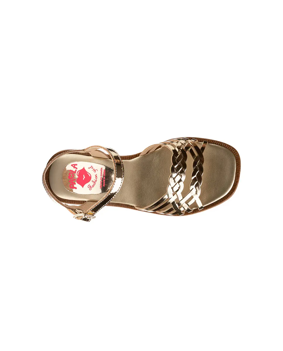 Сандалии кожаные для девочек с пряжкой Pablosky, золотой
